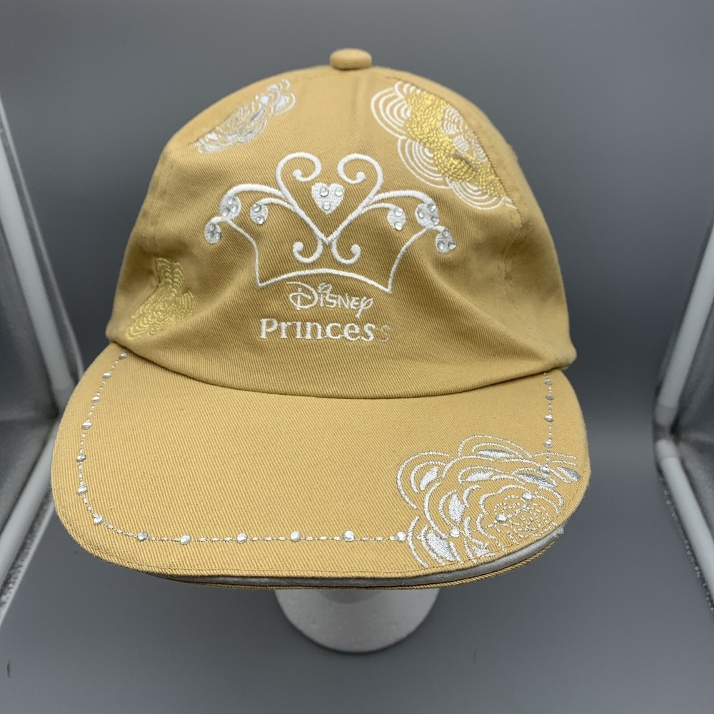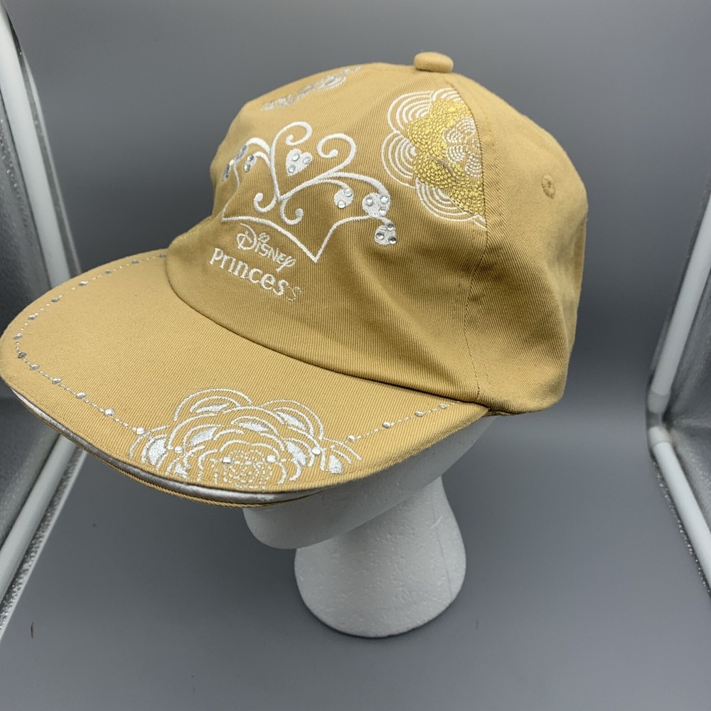 This product is a used Walt Disney World Princess Tan Baseball Hat Cap designed for adults. The hat features an adjustable Velcro strap and is branded with Disney's Princess franchise. It falls under the category of Disneyana and Contemporary (1968-Now) collectibles, as well as apparel and accessories.