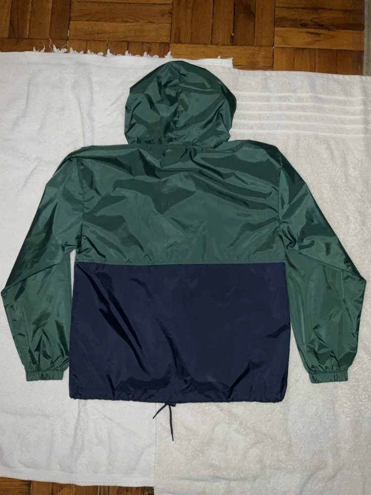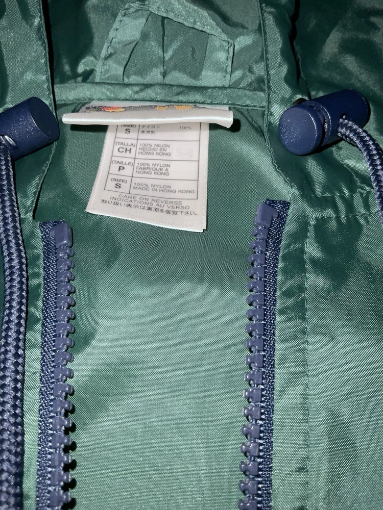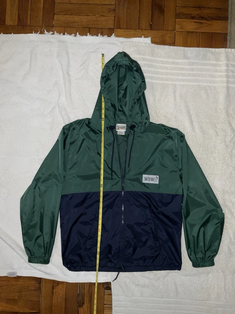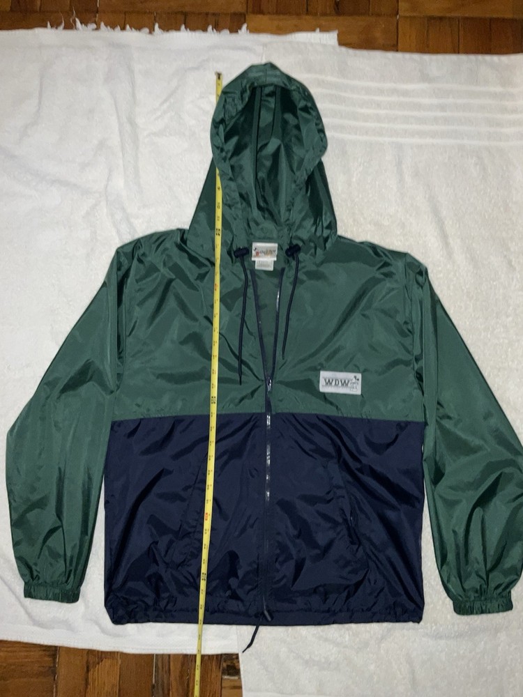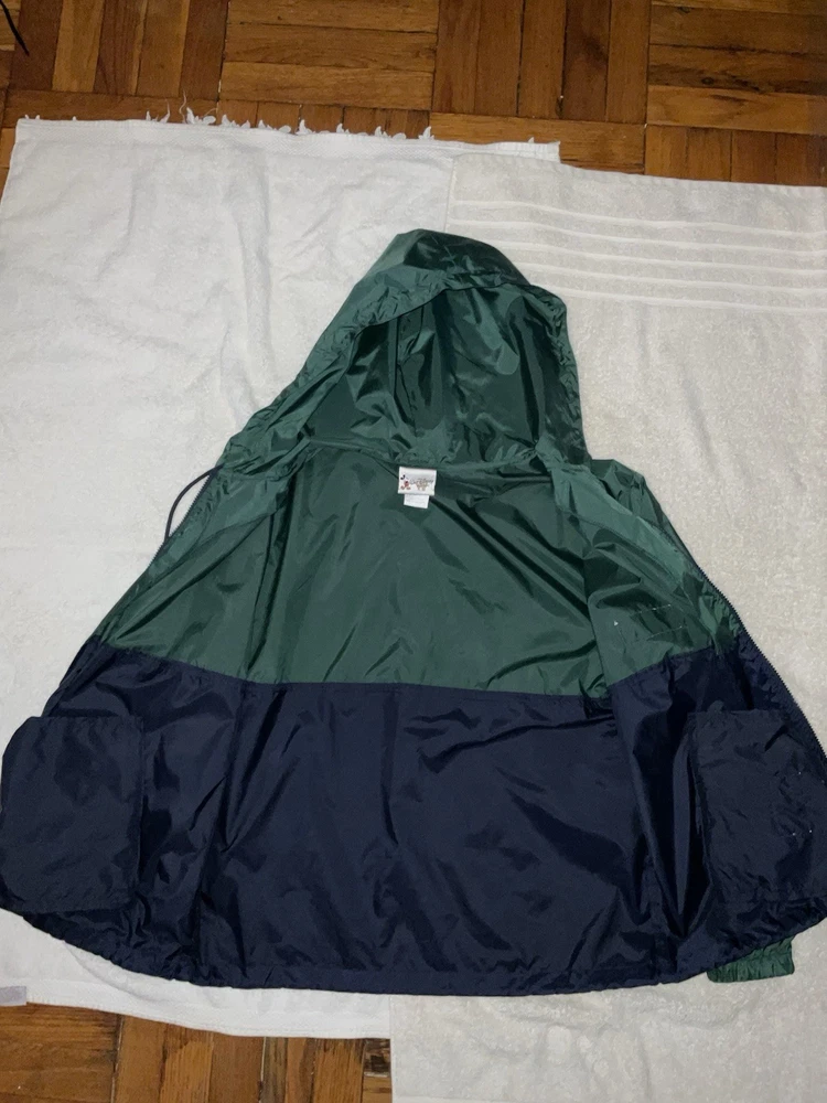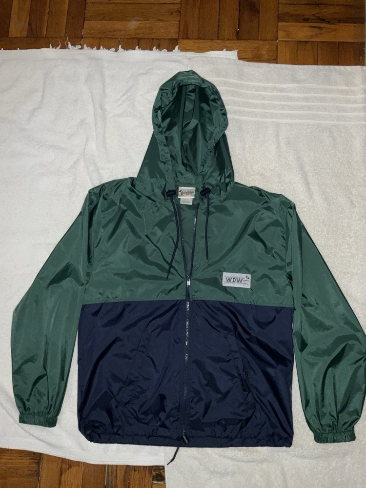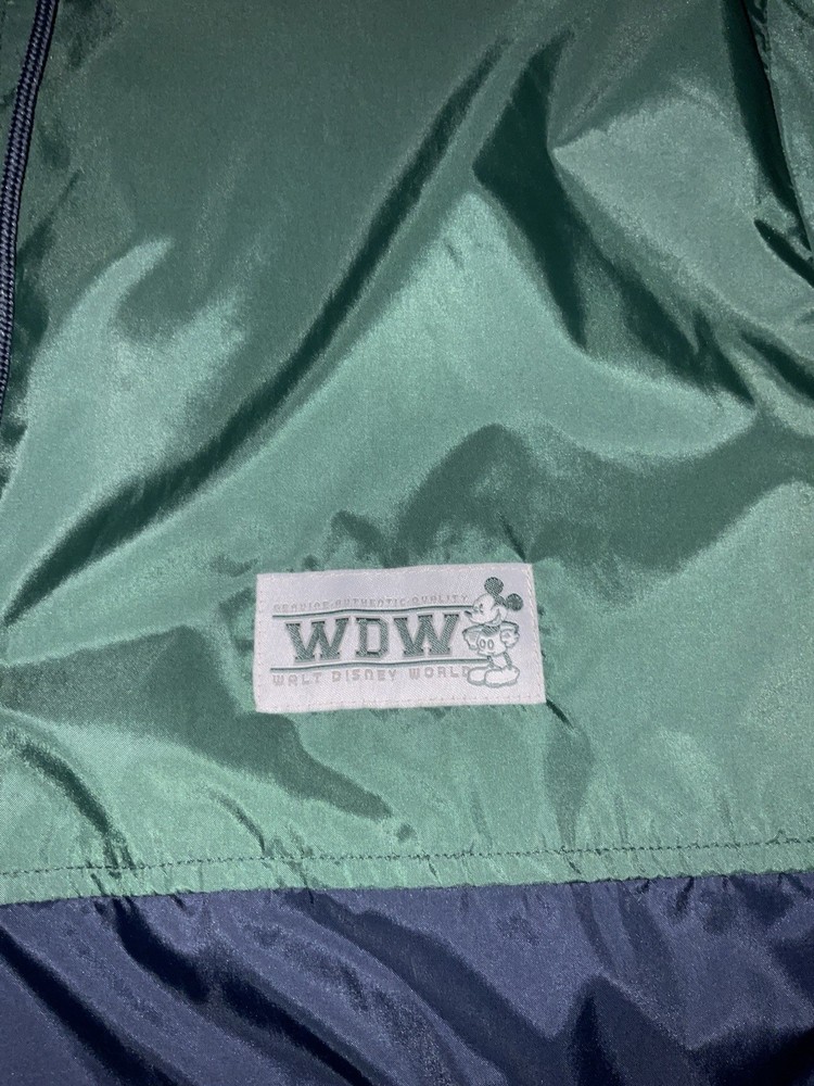 Embrace the nostalgia and practicality with the Walt Disney World Rain Jacket, a must-have for any Disney enthusiast. This unisex jacket, sized small, features a vibrant blue and green color scheme that's sure to stand out in any Disney crowd. The hooded design and zip closure offer both protection and style, making it an ideal choice for any park visit or Disney-themed event. Crafted with quality in mind, this rain jacket hails from Hong Kong and is a testament to the timeless appeal of Disney merchandise. Its contemporary manufacture ensures a modern fit and feel, while the iconic Walt Disney World branding adds a touch of magic to your outerwear collection. Whether you're a collector or a fan seeking function and flair, this jacket is a perfect addition. Adult Size Small. Barely Used. Very Good Shape. Sold as is.