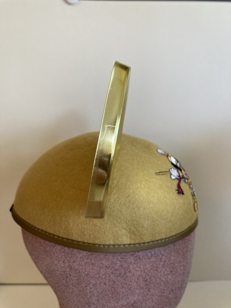 This hat is in good condition and will be shipped to you in a box. Please see my photos.