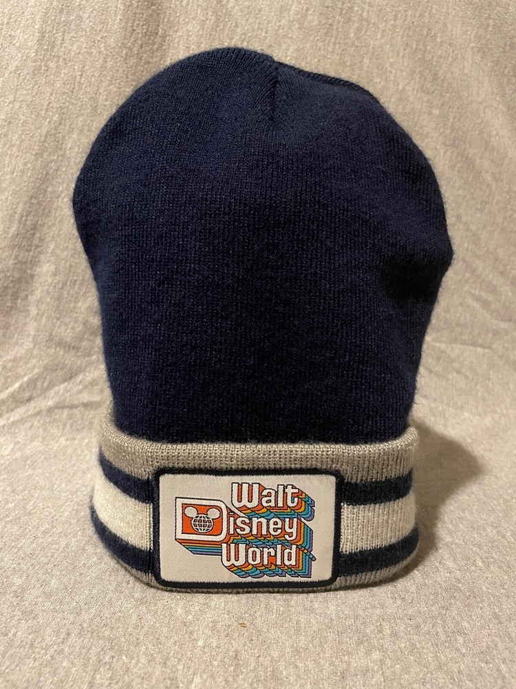 Walt Disney World Retro Logo Navy Gray Beanie Knit Cap Hat Great condition.