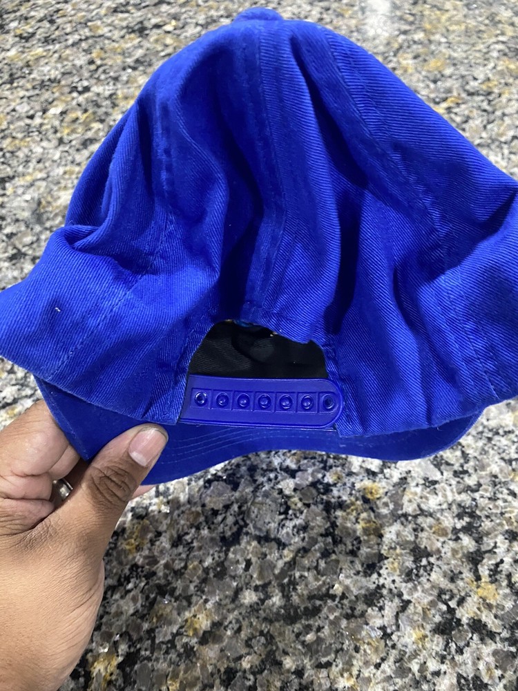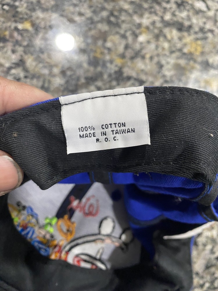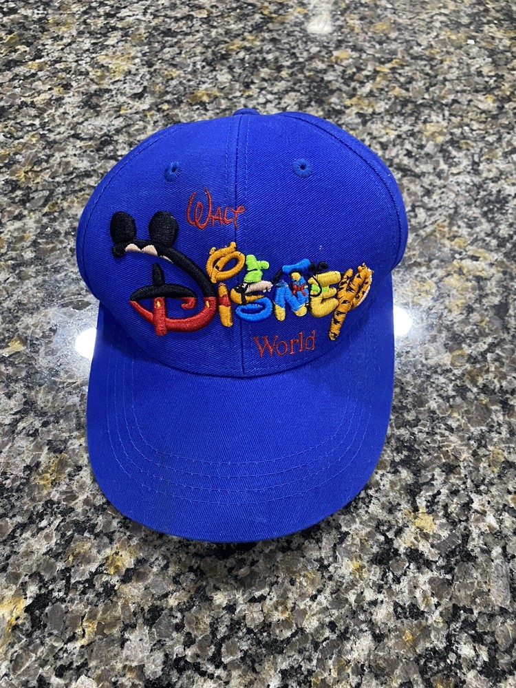 This product is a vintage snapback ball cap from Walt Disney World featuring the iconic character Mickey Mouse. The cap is blue in color and is designed for adults. It is a part of the Disney franchise and is categorized as collectibles and Disneyana.