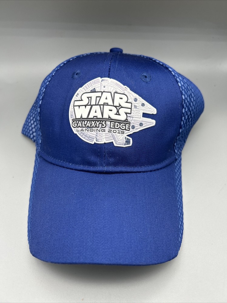 This Walt Disney World Star Wars Galaxy's Edge Landing 2019 Hat Cap features the iconic Millennium Falcon and is a must-have for any Star Wars fan. The hat was originally sold at the Star Wars Celebration and is a great addition to any collection. The hat is made by Disney and is a contemporary souvenir from the Theme Park. It features the Star Wars franchise and is perfect for anyone who wants to show their love for the galaxy far, far away. Don't miss out on this exclusive item!
