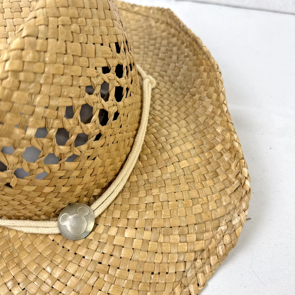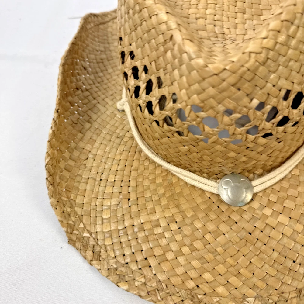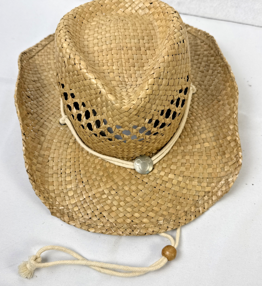 Walt Disney World Straw Cowboy Cowgirl Western Hat with Micky Medallion SHIPPING: Items will be shipped within 48 hours or less. FREE RETURNS: Returns are accepted within 30 days. Once we have received the item back and it is verified to be in the same condition as sent, we will issue a refund for the amount of the item. NOTES: -We wash all clothing items (except new with tags) and place them in cellophane bags inside plastic topes to protect them until they ship from our smoke free home. -We mark our items ending in $.46 to honor my best friend and sister in-law who lost her battle with cancer at the age of 46 in 2018. She loved finding deals on clothes and this is our way of keeping her memory alive. -My husband and I are both educators located in northeast Indiana. We enjoy finding items and listing them online for sale. Thank you for considering this item for purchase.
