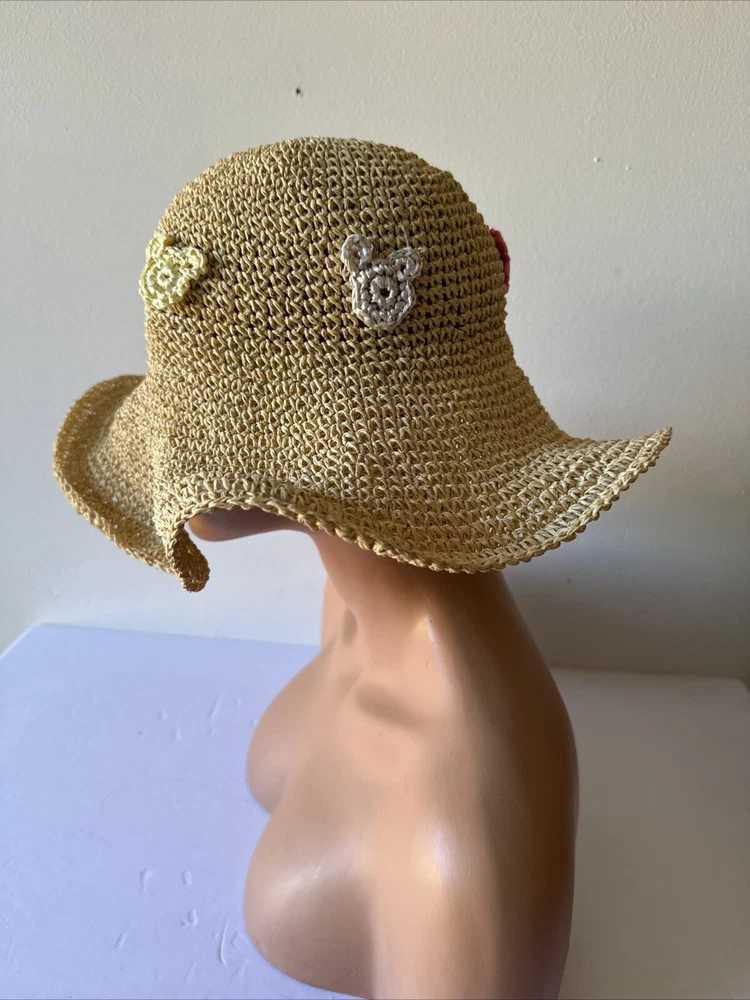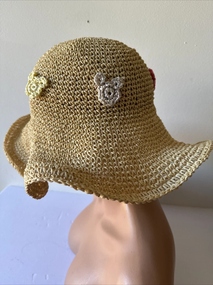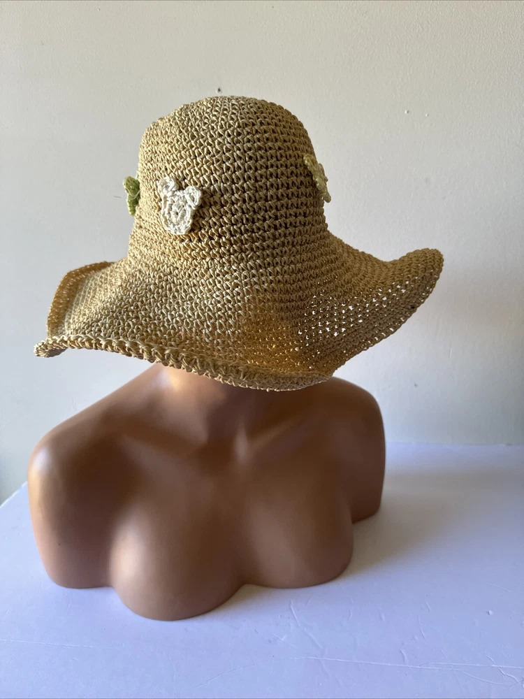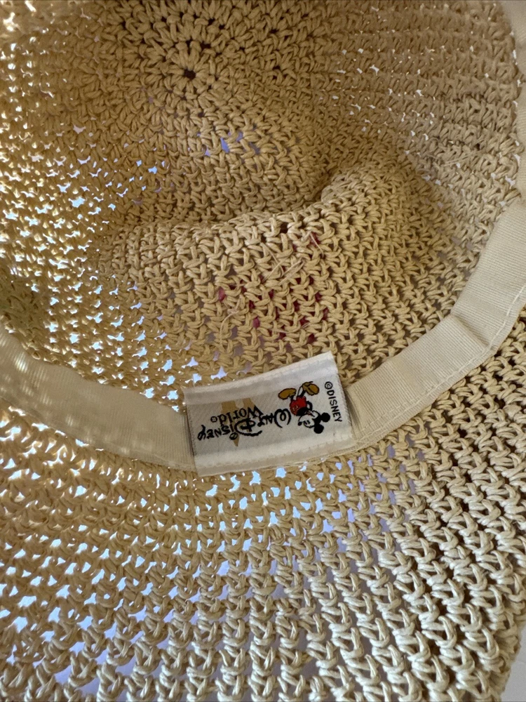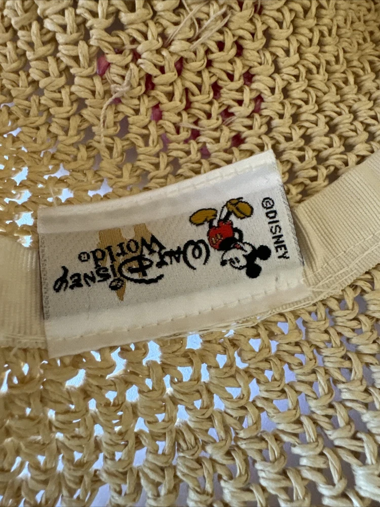 This rare Walt Disney World straw golf/sun hat features the iconic Mickey Mouse character. Made of high-quality materials, this black hat is a must-have for any Disneyana collector. The hat is perfect for keeping the sun out of your eyes while playing a round of golf or just out and about. The hat is branded with the Disney logo and is an officially licensed product. It is a great addition to any Disney merchandise collection and is sure to be a conversation starter. Get your hands on this unique piece of Disney memorabilia today!