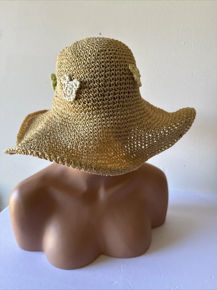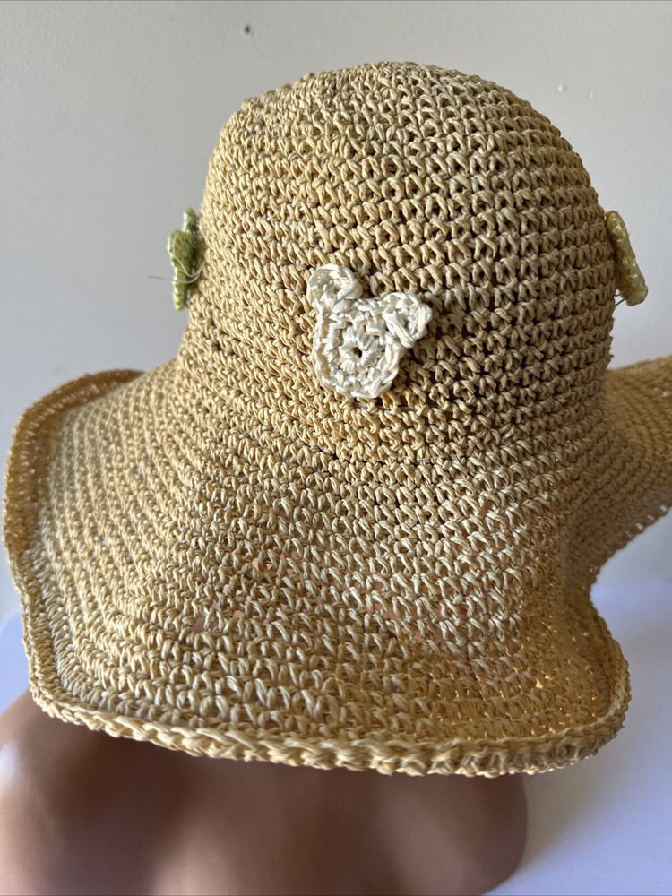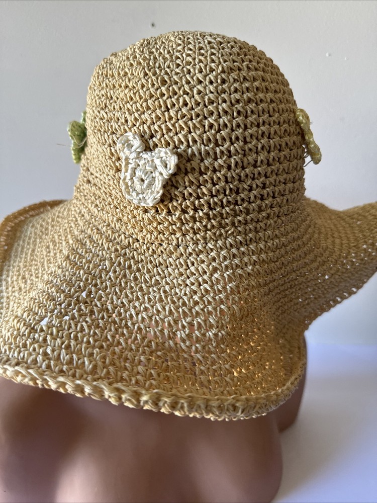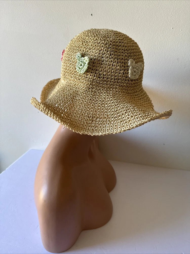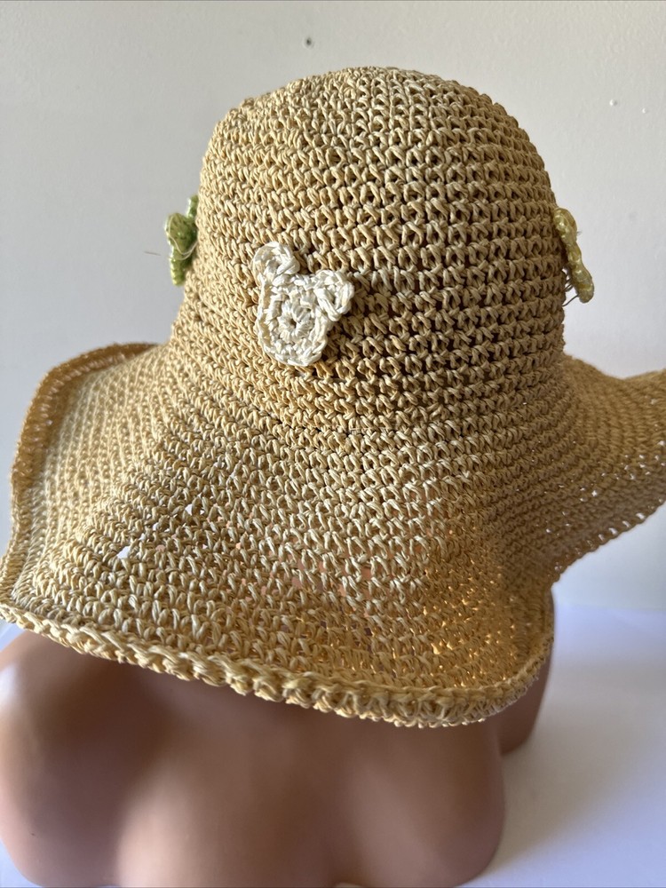 This rare Walt Disney World straw golf/sun hat features the iconic Mickey Mouse character. Made of high-quality materials, this black hat is a must-have for any Disneyana collector. The hat is perfect for keeping the sun out of your eyes while playing a round of golf or just out and about. The hat is branded with the Disney logo and is an officially licensed product. It is a great addition to any Disney merchandise collection and is sure to be a conversation starter. Get your hands on this unique piece of Disney memorabilia today!