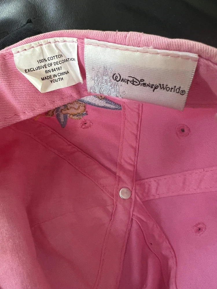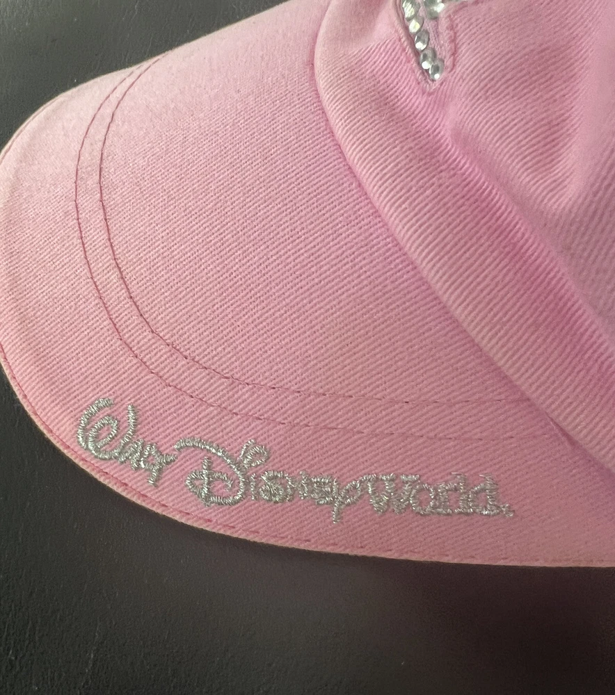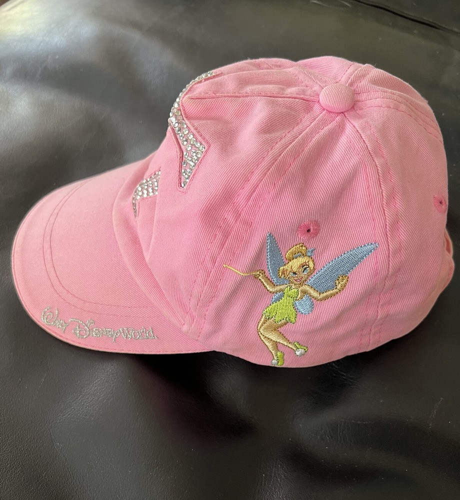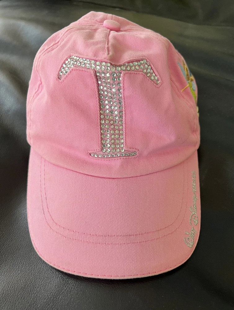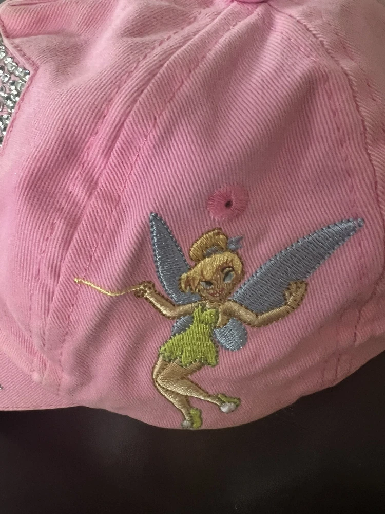 Walt Disney World TINKERBELL “T” Glitter Pink Baseball Cap/Hat Adjustable Youth. Excellent used condition with very minimal wear. All crystals intact.See photos. From a pristine smoke free environment...