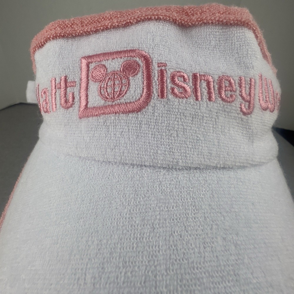 <![CDATA[<div>This Walt Disney World visor hat is perfect for any fan of the iconic franchise. The hat features an adjustable strap and is made of soft terry cloth material, making it comfortable to wear for an extended period of time. The hat is white in color with pink accents, and showcases the beloved character Mickey Mouse. The hat is suitable for unisex adults and is one size fits all. It is a contemporary piece, falling under the Disneyana collectibles category. This item is sure to be a beloved addition to any Disney fan's collection, and is a great way to show off your love for the franchise.