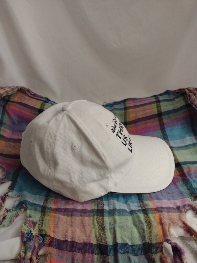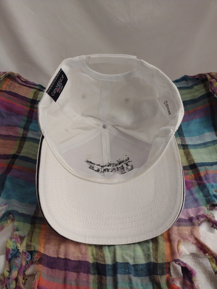 Get ready to show off your love for all things Disney with this Walt Disney World Thrills Cap/Hat. The adult adjustable hat comes in a classic white color with black accents. The hat is perfect for any Disney fan and features the iconic Thrills Us Like convention/event logo.The hat is suitable for unisex use and is made in China with high-quality materials. This hat is a must-have for any Disneyana collector or fan and is perfect for wear during parades or other special events. Add this hat to your collection today! This cap has been loved and is in excellent pre owned condition,