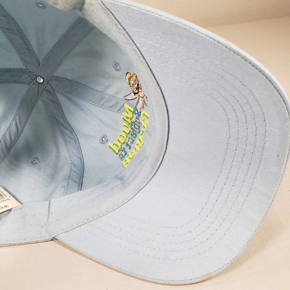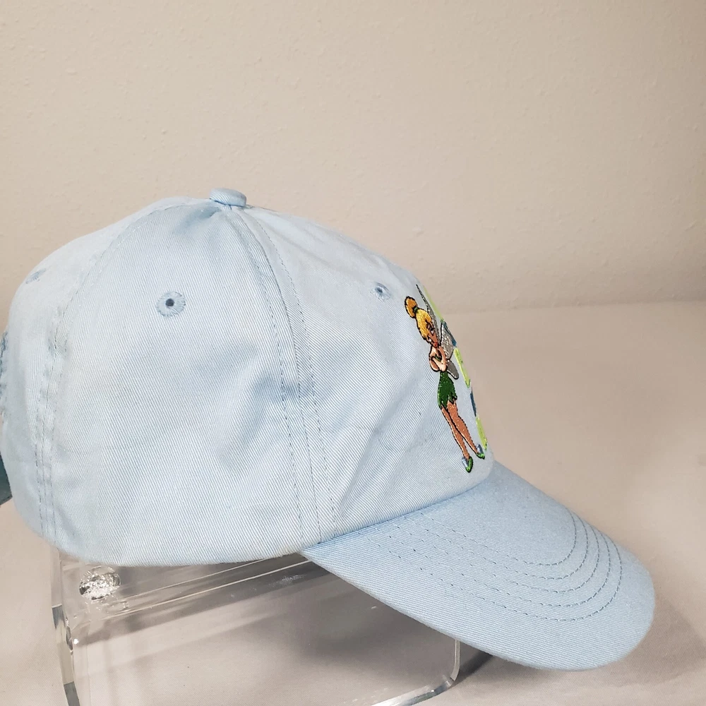 This product is an officially licensed Walt Disney World Tinkerbell hat cap, featuring the iconic character Tinker Bell from the Disney franchise. The hat is adjustable in size and suitable for both men and women, with a charming blue color that adds a touch of whimsy to any outfit. Hook-and-loop closure ensures a secure and comfortable fit for all wearers. Perfect for Disney fans looking to showcase their love for the beloved characters and themes of the Disney universe.