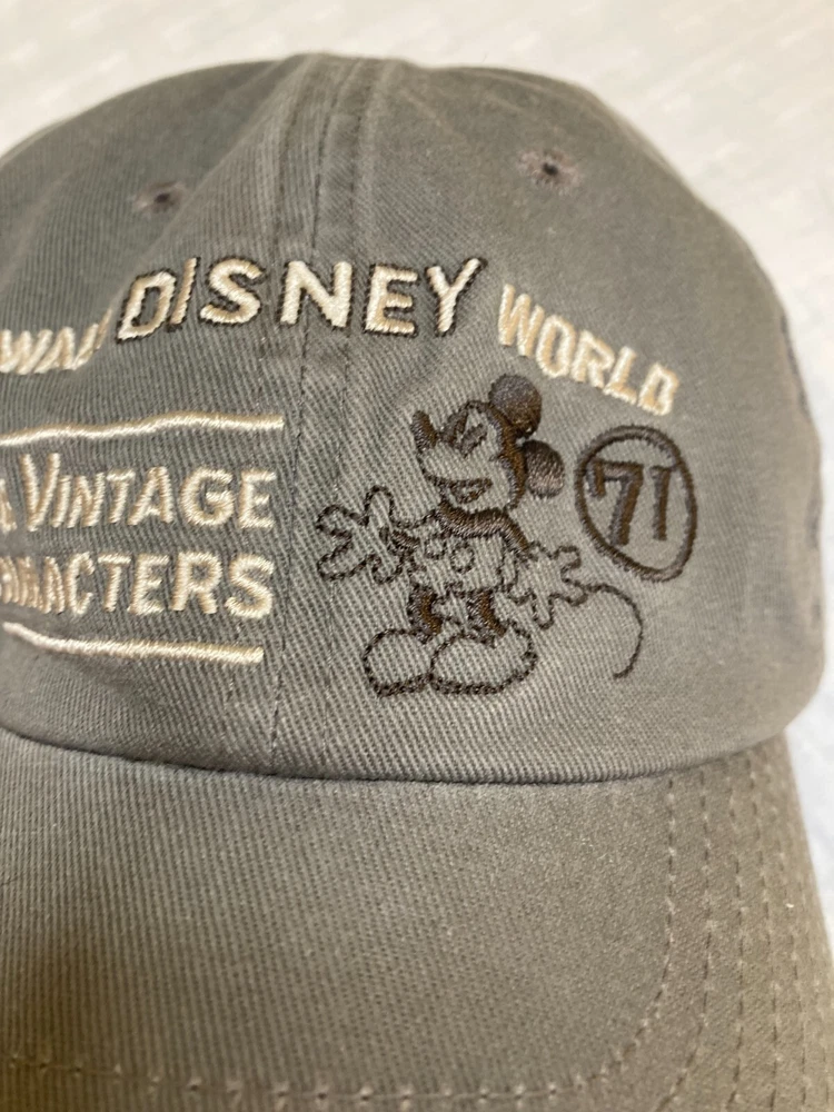 WALT DISNEY WORLD TRUE VINTAGE CHARACTERS Mickey Mouse '71 UNISEX BASEBALL CAP HAT ADJUSTABLE PRE-OWNED / NEVER WORN -- EXCELLENT CONDITION!! GREAT GIFT IDEA!! Embroidered on a Green Khaki Twill 100% Cotton Fabric Cream Colored & Black Thread was used. It is perfect. No loose threads. Front design reads, WALT DISNEY WORLD TRUE VINTAGE CHARACTERS. A design of the "old Mickey Mouse" is stitched in black with the number 71 in a circle. Reinforcement fabric is attached to front of hat where embroidered to maintain quality of design. Brim is clean and tight. Adjustable Hat with Brushed Antiqued-Brass Clip in Back. 100% Cotton with Air Holes Stitched on Top of Hat. Fabric Covered Button Located on Top Center of Hat. SUPER CLEAN - No odors. Came from non-smoking environment. Still has the cardboard support on interior top of cap above brim. Maker labels are stitched into interior side of hat in four-color. Reads, "©DISNEY Walt Disney World® Fabric white tag is attached to the interior side and reads (SIZE) ADULT 100% COTTON EXCLUSIVE OF DECORATION MADE IN TAIWAN. RN 84167. CA 25083 (this can be cut off easily enough). Seller Notes: Review our photos for details prior to purchasing. We try to photograph to the best of our capability. We are not professional photographers. All of our vintage and antique items have been pre-owned for use or display. They may show signs of wear and age. We strive to accurately describe the condition and manufacturer flaws, but please keep in mind that vintage/antiques are not always in perfect condition. If you have any questions please don't hesitate to reach out to us. We are happy to assist in a timely manner. We package with care to make sure your purchase arrives safe and sound. Check out our feedback. We're known for prompt shipping and safe arrivals! Check out our Ebay store for other available vintage and antique treasures. We will be happy to combine shipping. This is a great opportunity to fill out your collection, start a new one, our purchase as a gift! Questions : We welcome & encourage your questions regarding our merchandise Please do not ask us to end a listing early for a "Best Offer". Please contact us DIRECTLY should you have questions or concerns. Review Ebay help for customers should you have questions relating to policies and procedures. Payment: Via Paypal through Ebay. Make sure that your billing address matches the address on your payment method. See the help section of Ebay to ask about other payment options. Shipping & Insurance: We ship within 24 hours of receipt of payment. We do not charge for packaging materials and handling. We will gladly combine shipping, when possible, to save you money on postal cost. If we overcharge on postage we will refund all monies over $1.00 Insurance will be included on items over $50. This service may be shipped via two boxes. International Customers: We welcome international buyers unless noted otherwise! Please contact us PRIOR to purchase for correct shipping charges . Please refer to your country's Custom Office regarding any additional charges upon pick up. Custom import charges and/or taxes are the responsibility of the buyer. We will not adjust the purchase value on customs paperwork. If we overcharge on postage we will refund all monies over USD $1.00 Insurance will be included in shipping charges for items over USD $50. Returns: All merchandise is sold "AS IS" and as described. You MUST contact us prior to return request. We will accept returns if completed within 30 days of receipt. Return shipping is FREE. Returned merchandise should be in the condition received with original packaging. We may ask for photos of packaging and merchandise if damage caused by delivery service. Thanks for viewing this merchandise! Please visit our Ebay store: Ann Lloyd Antiques for additional items for sale.
