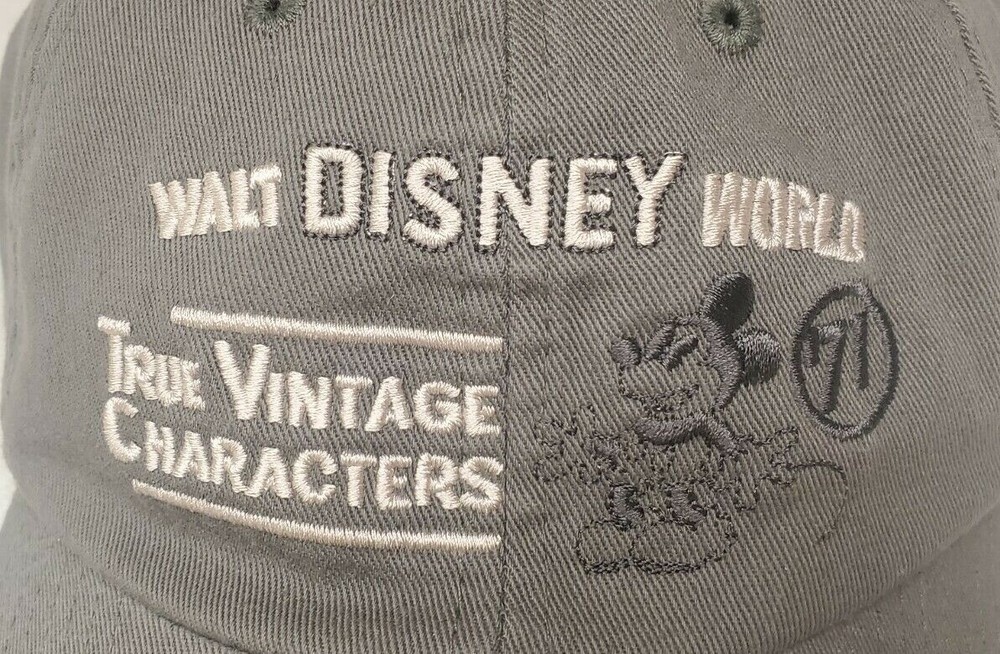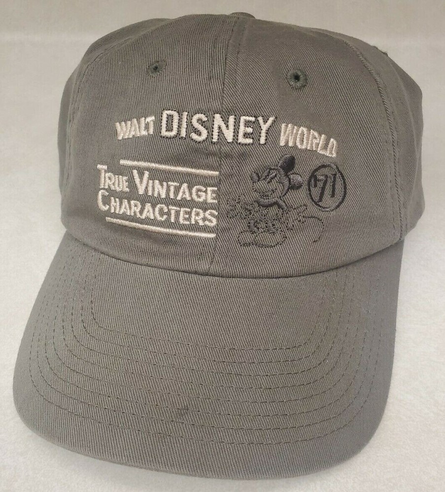 Walt Disney World True Vintage Characters ‘71 Strap Back Baseball Hat Cap. Adjustable from 57-61 cm. Very nice, used condition with no sweat staining to interior. One very small darker spot on brim, shown in photos. Please review pictures for condition.
