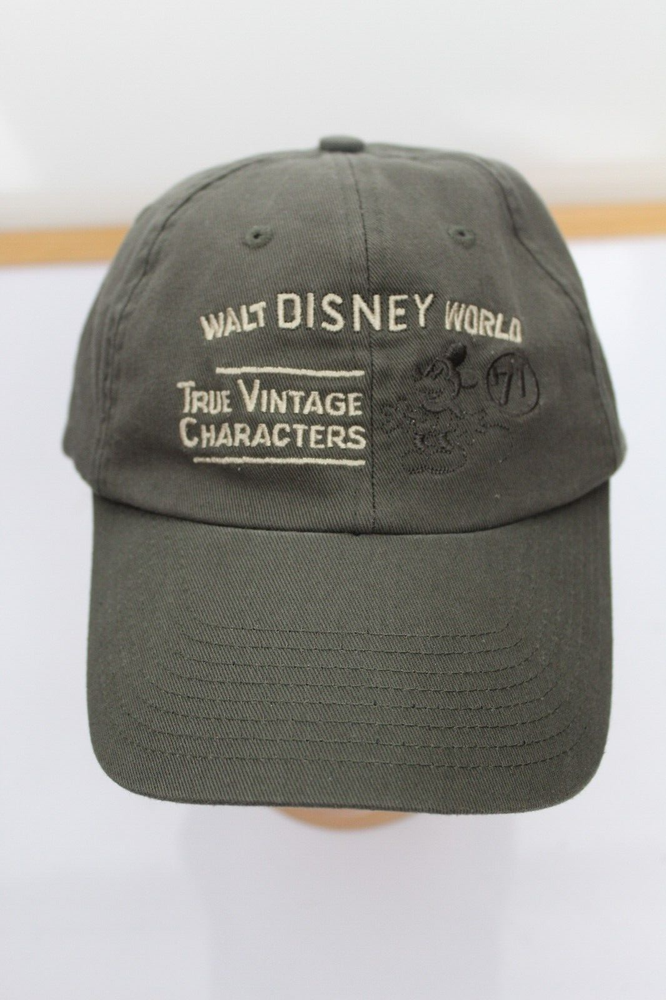 Walt Disney World True Vintage Characters Hat Mickey Mouse '71 Green Embroidered adjustable slide buckle Lightly worn no holes or stains