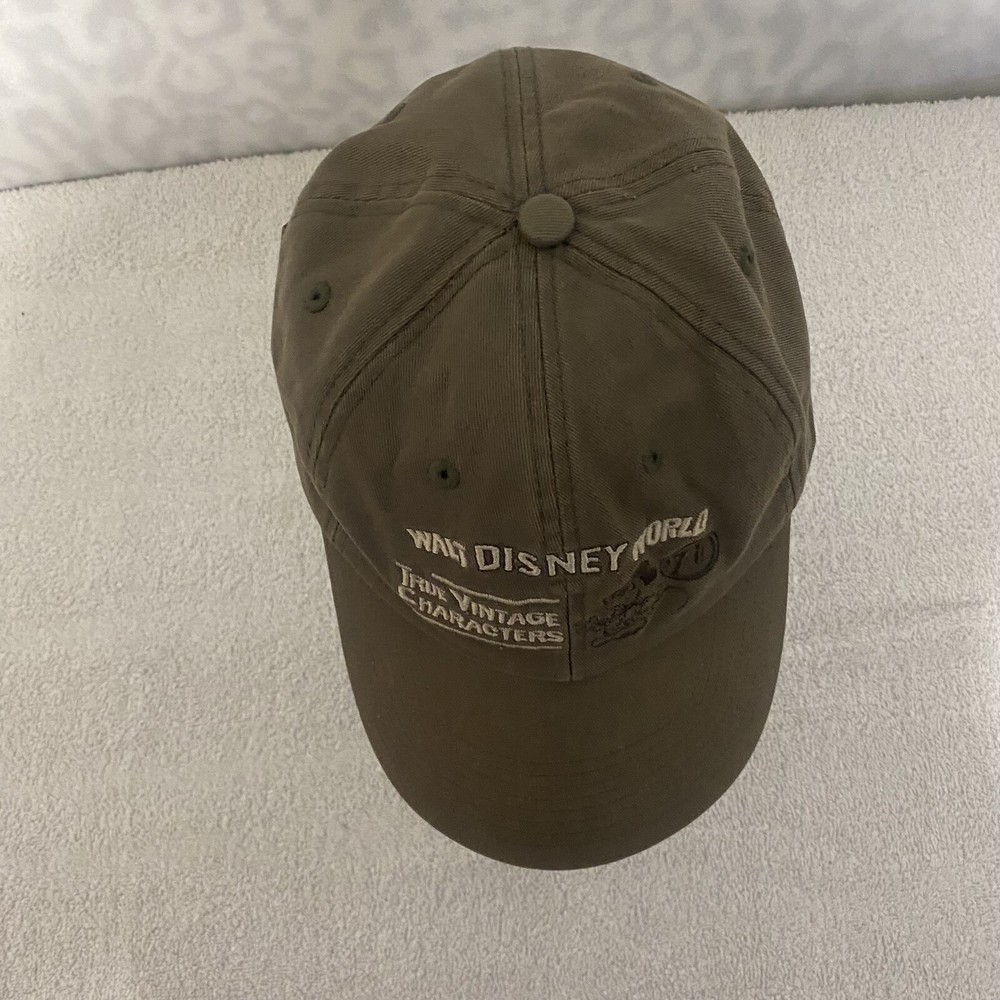 This vintage Walt Disney World baseball cap features the iconic character Mickey Mouse in beige, perfect for any Disney or cartoon lover. Made of 100% cotton, this lightweight and adjustable cap is a great addition to any outfit. The cap is one size fits all with a circumference of 57-61cm and is officially licensed by Disney. It is perfect for everyday wear or for a day at the theme park. Made in Taiwan, this cap showcases the quality and craftsmanship of Disney merchandise.