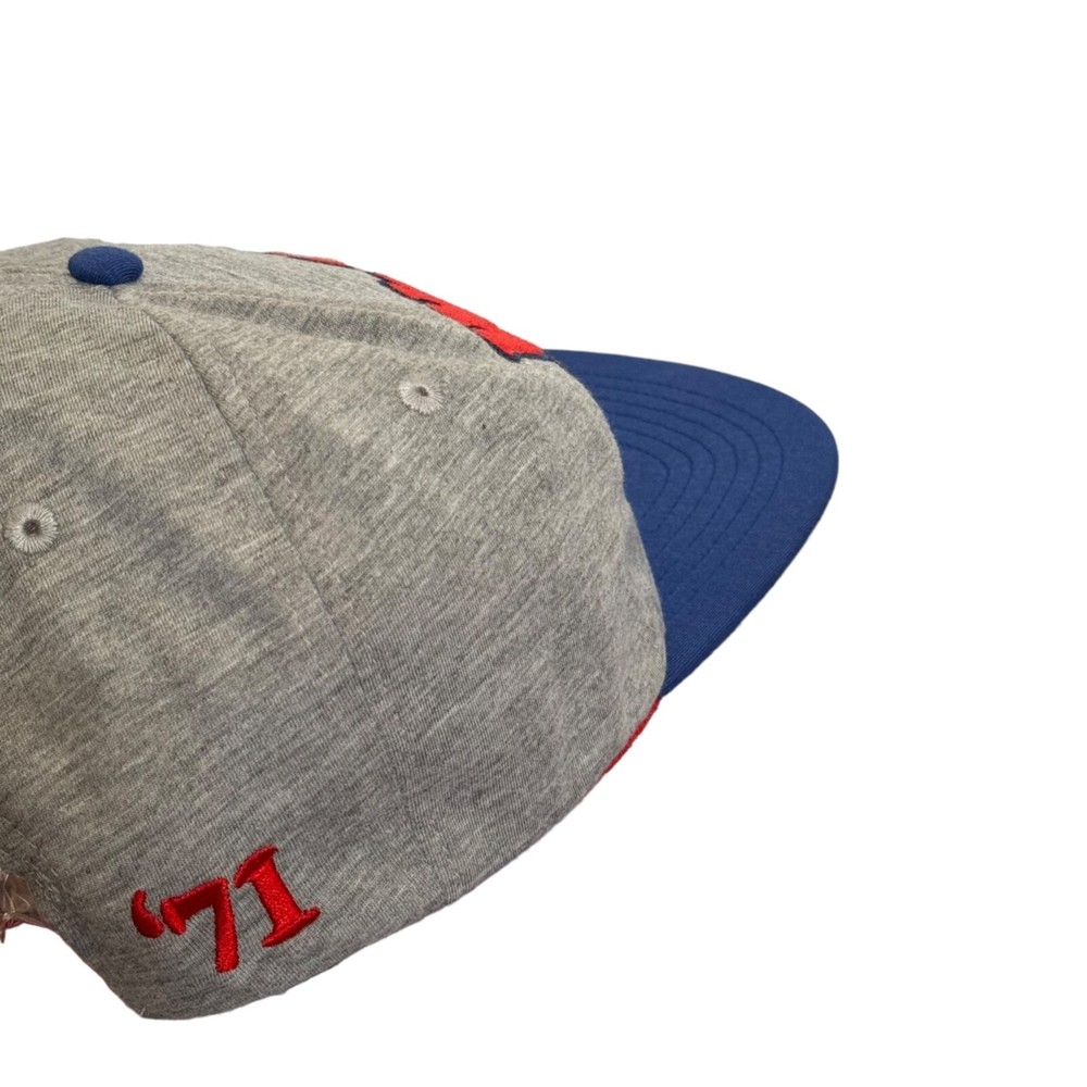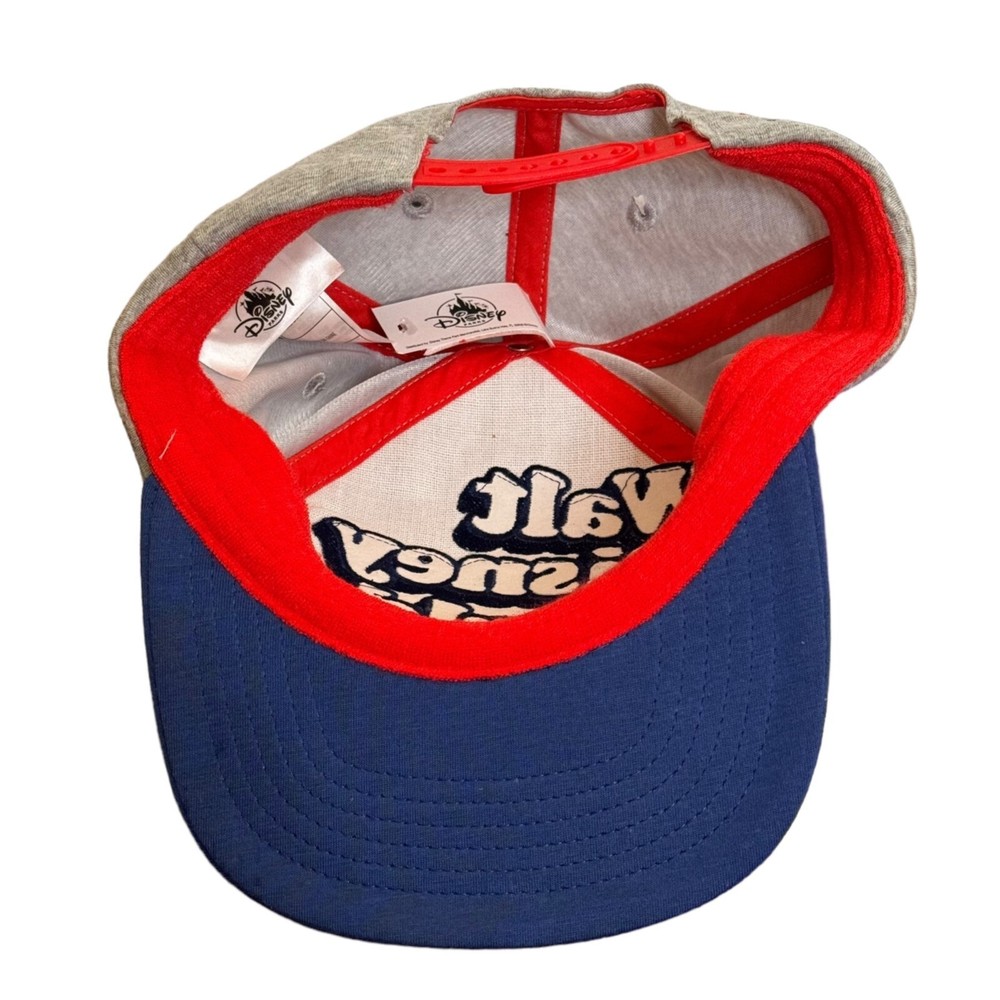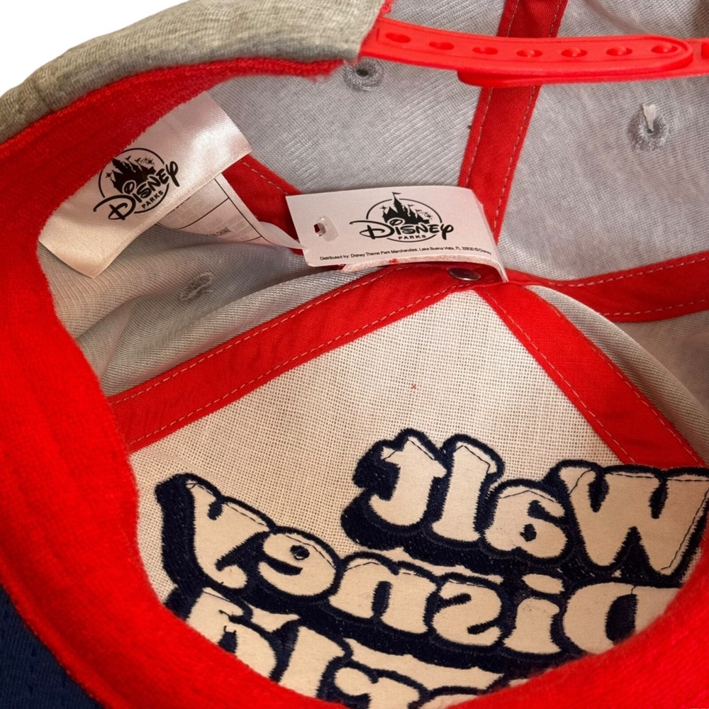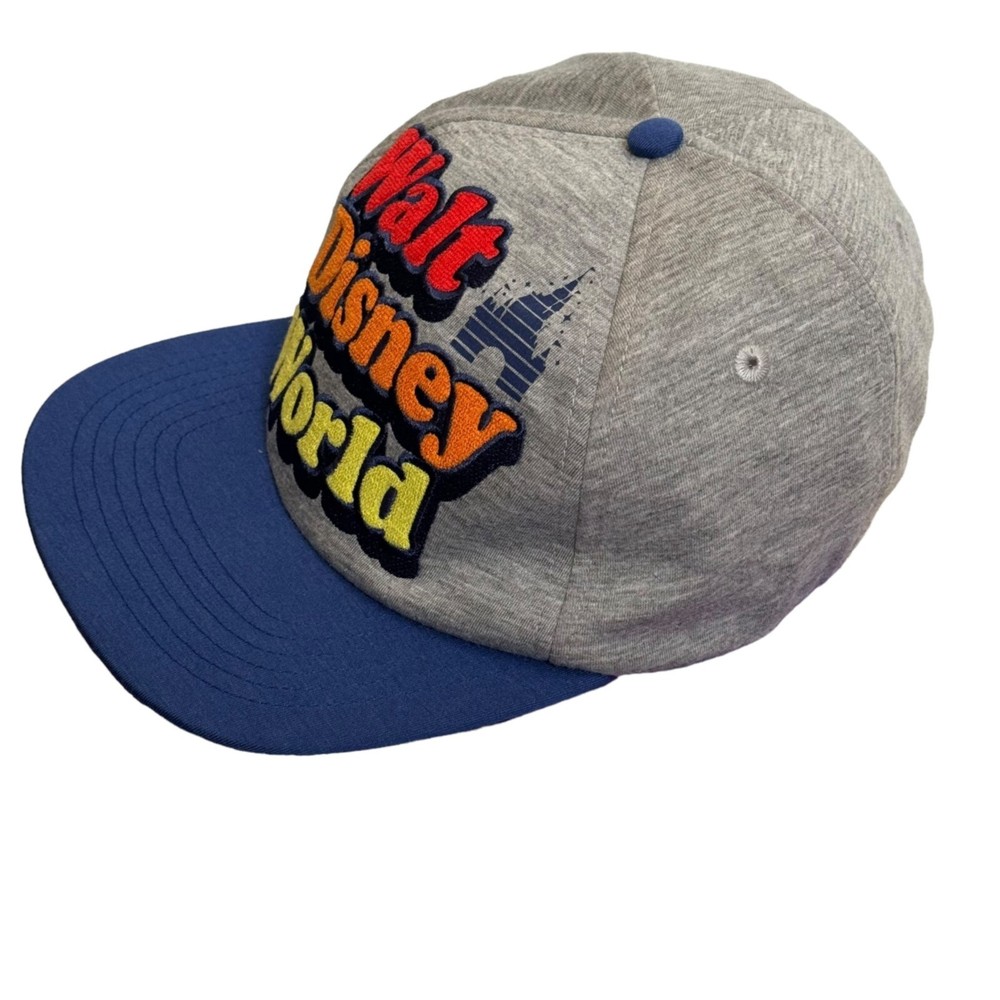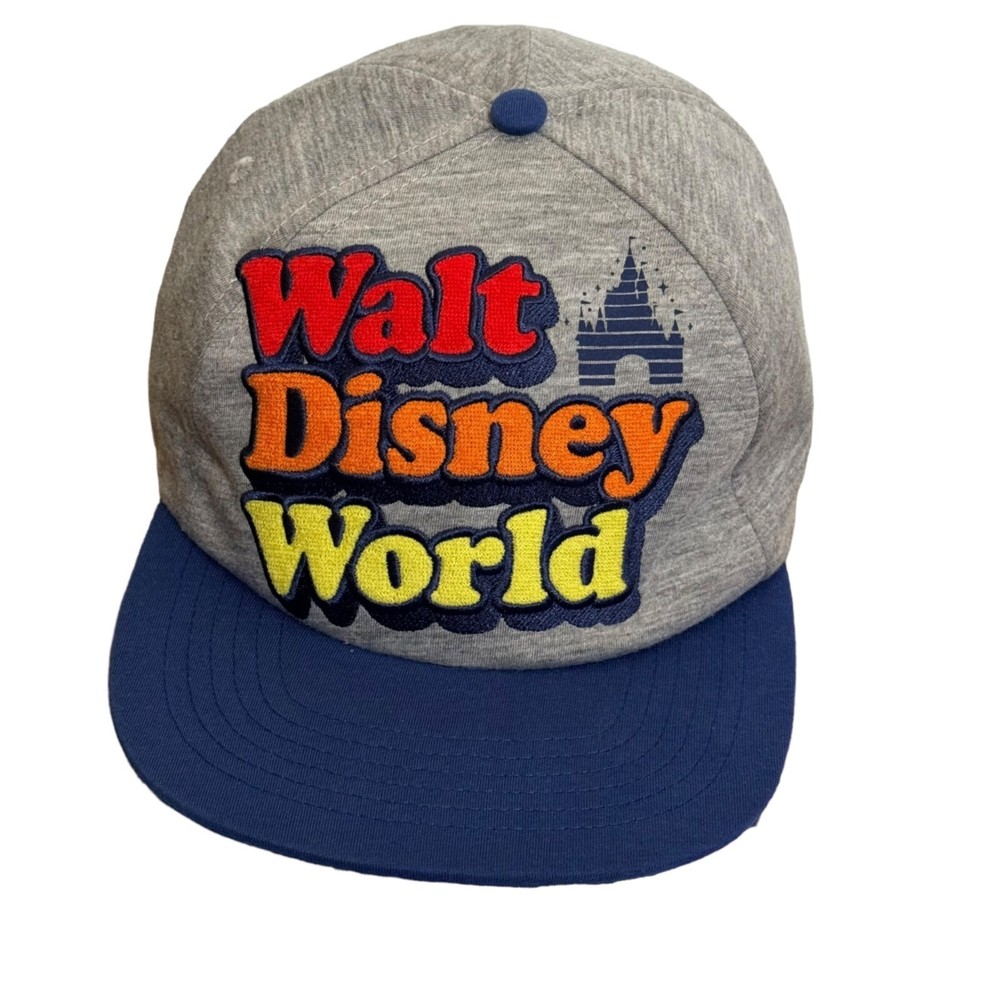 Step up your hat game with this Disney snapback! Flaunt your love for the magical kingdom with colorful embroidery. Perfect for any Disney enthusiast. • Snapback closure • Colorful "Walt Disney World" embroidery • '71 detail on the side • Blue brim, grey cap Features: • Snapback closure • Colorful "Walt Disney World" embroidery • '71 detail on the side • Blue brim, grey cap Size: Unisex One size fits most Condition: Pre-Owned