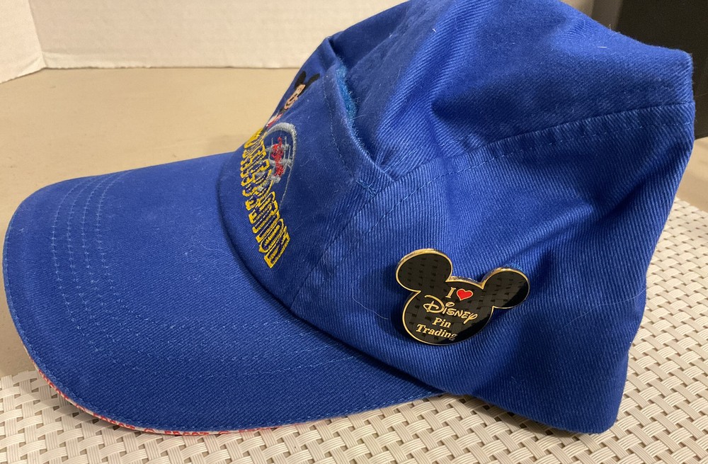 Celebrate your love for Disney with this vintage Walt Disney World Pin Celebration Hat. The year 2001 marked a special time for Disney fans, and what better way to commemorate it than with this hat. The hat is brand new and has never been worn, making it a perfect addition to any Disney collector's merchandise. This hat was exclusively sold at Walt Disney World theme park in 2001, making it a rare and unique find. The hat features the iconic Disney pin trading theme, and is perfect for any Disney enthusiast. Don't miss the chance to add this piece of Disney history to your collection.