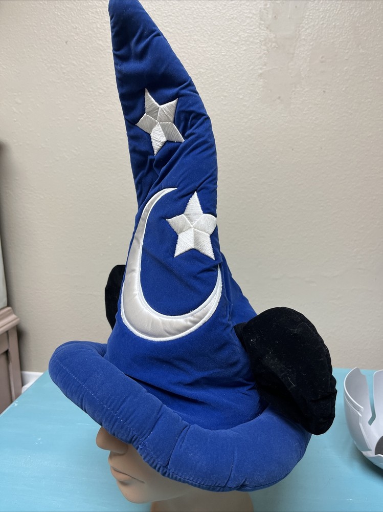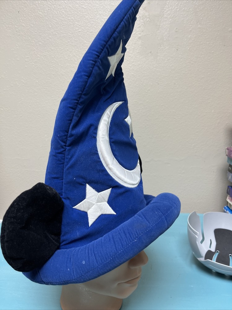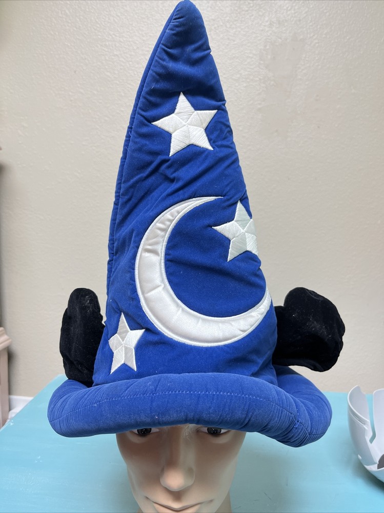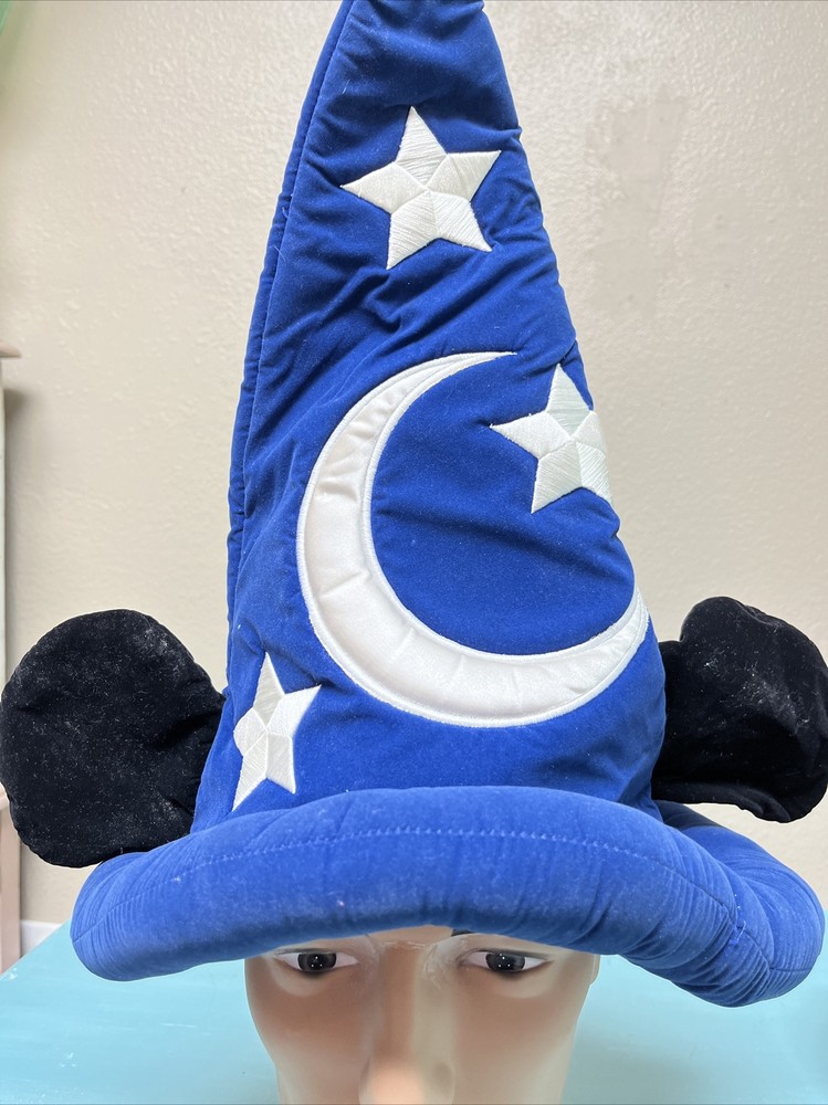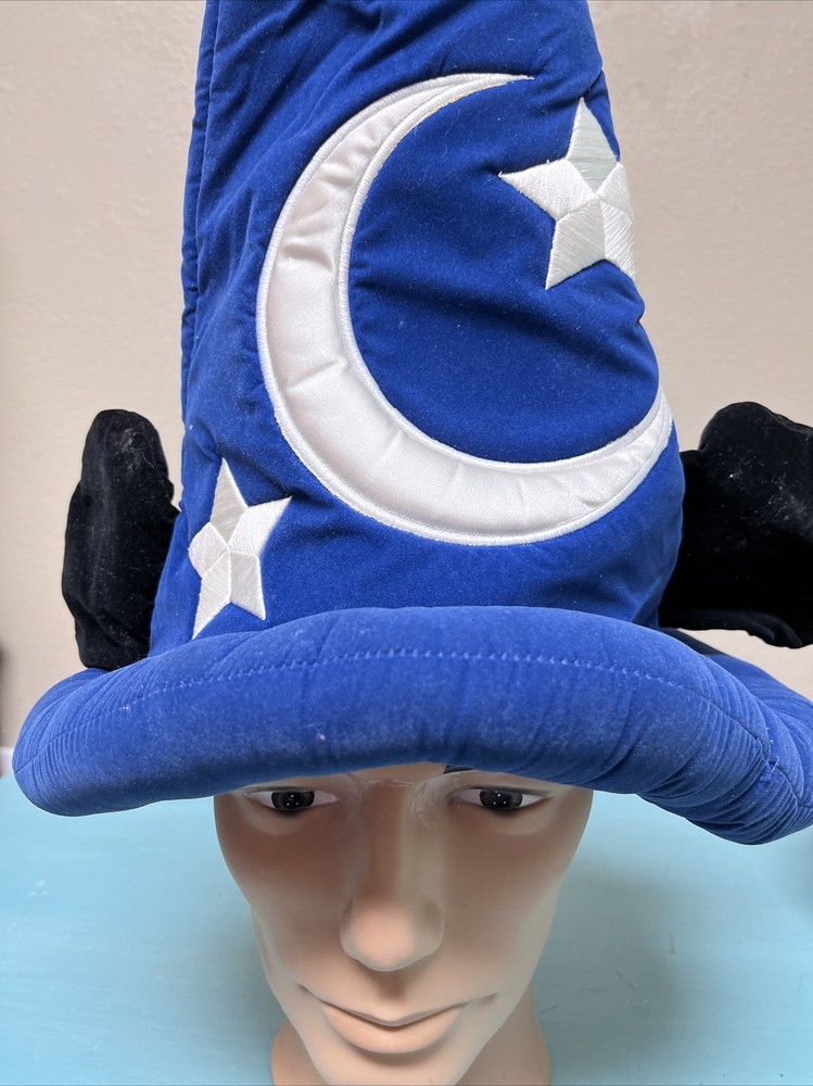 Get your hands on this vintage Walt Disney World Sorcerer Wizard Mickey Hat! The iconic blue hat features the beloved character Mickey Mouse in his wizard outfit and is suitable for adults of all ages, making it a perfect unisex collectible item for Disney fans. The hat is one size fits all and is made with high-quality materials, ensuring its longevity. The hat is a part of the Disneyana franchise and is perfect for adding a touch of contemporary Disney magic to your apparel collection. Whether you're a collector or simply a fan of the world-renowned theme park, this hat is a must-have. So go ahead and bring a piece of Disney home with you today!
