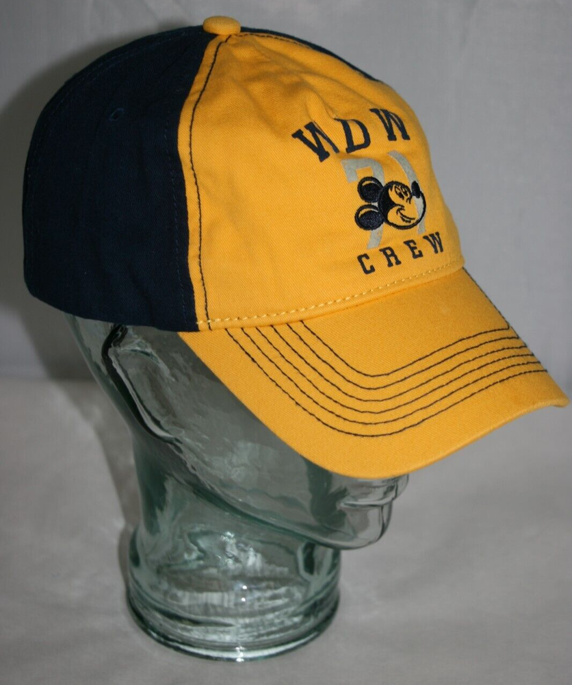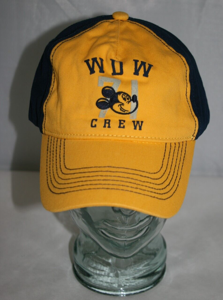 WALT DISNEY WORLD WDW 71 CREW MICKEY MOUSE YELLOW BLUE BASEBALL HAT CAP ADJUSTABLE SIZE: 57CM-62CM MATERIAL: 100% COTTON PRE-LOVED WITH LOTS OF LIFE LEFT ITEM IS FROM A SMOKE FREE HOME :) THANKS FOR LOOKING AT ANOTHER FAB FIND!!! LIVE LIFE FAB