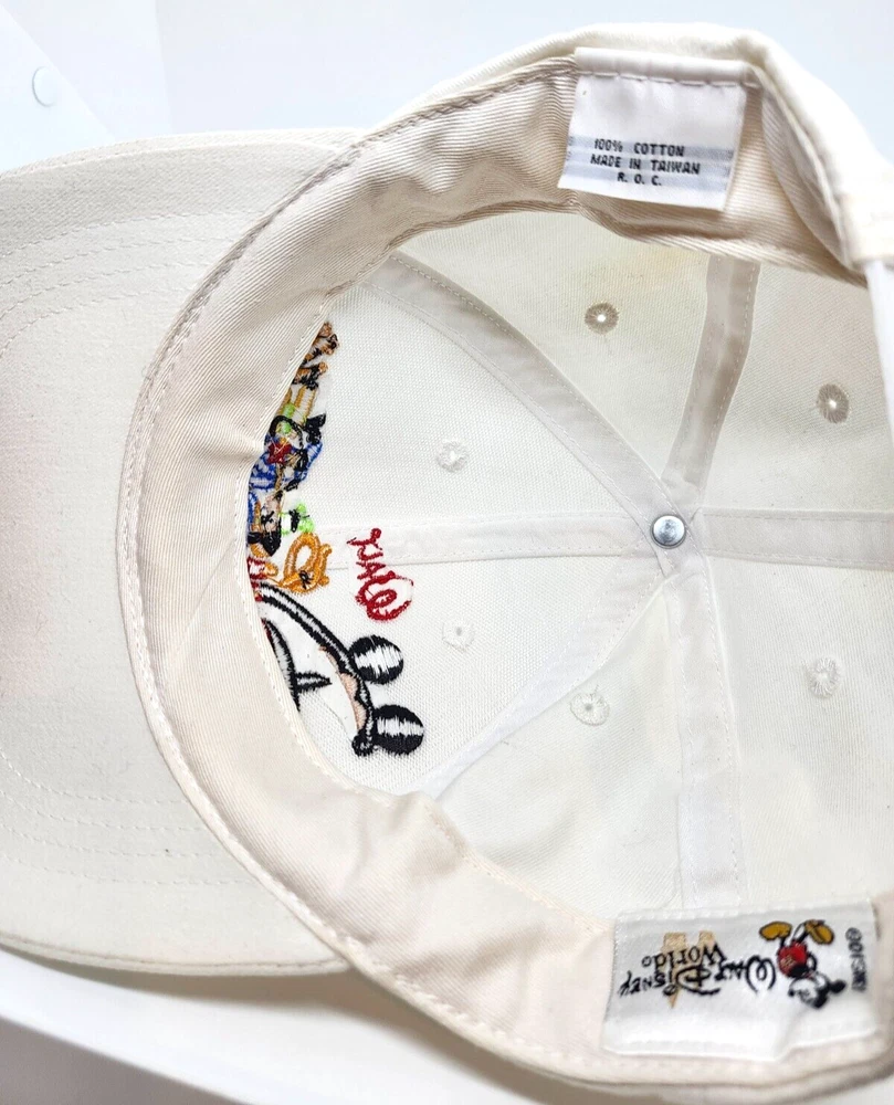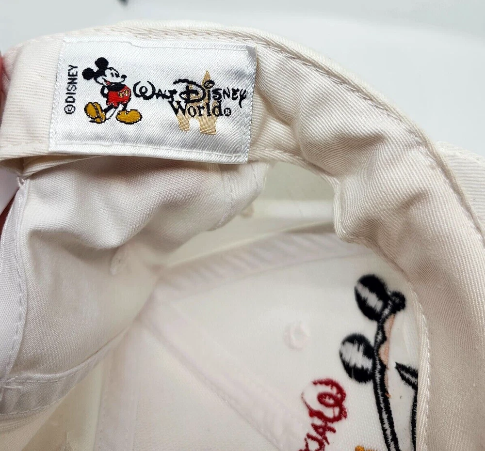 Walt Disney World White Baseball Cap Dad Hat Authentic Embroidered VTG Hat. Structured 6 panel crown, curved brim. Very Good Condition . (See Pics). RiverDaughterCollectibles has been in the collectibles business for over 30 years, and on eBay for over 20 years as hisnhercollectibles, with over 2700 positive feedback rating, but focuses more on Sports & Music collectibles. We have started this page to focus more on Antiques, Books, Folk Art, etc. We take pride in delivering quality collectibles very quickly - Looking forward to the opportunity of working with you. THANKS & HAPPY BIDDING!!!