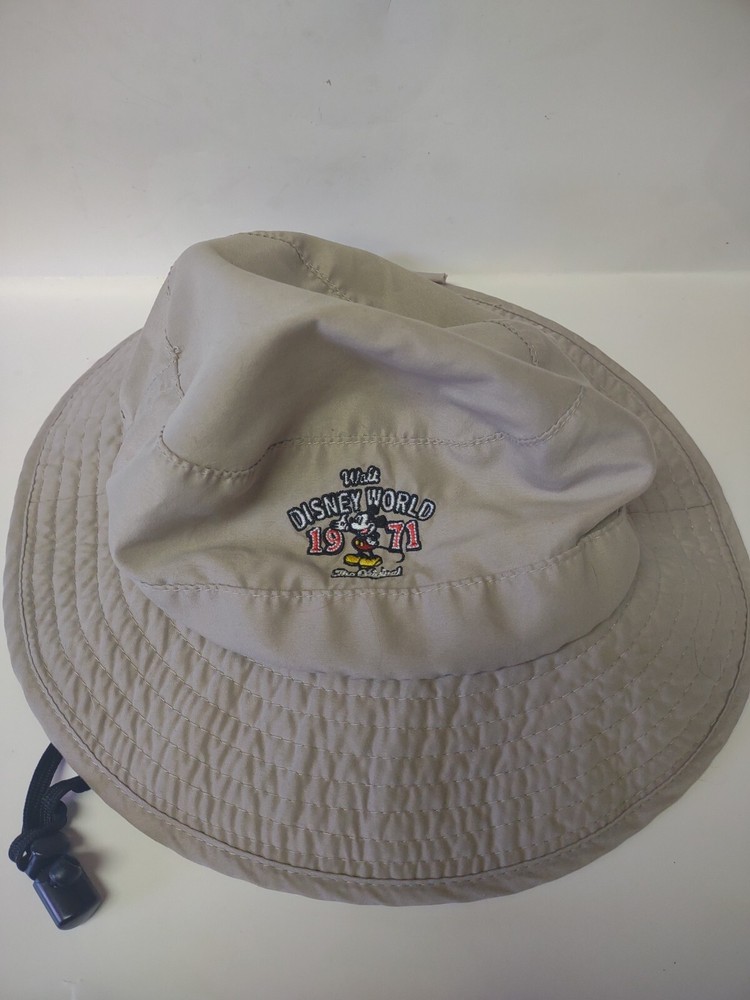 This Walt Disney World safari bucket hat is perfect for Mickey Mouse fans who love exploring the great outdoors. Made from high-quality materials in Taiwan, this beige hat is sized for adults and features a wide brim for optimal sun protection. The hat is adorned with a playful Mickey Mouse design that will bring a touch of magic to any adventure. Ideal for collectors of Disneyana and contemporary Disney merchandise, this hat is suitable for both men and women and is the perfect addition to any Disney fan’s wardrobe. Whether you’re heading to Walt Disney World or simply enjoying a day outside, this hat is a must-have accessory.