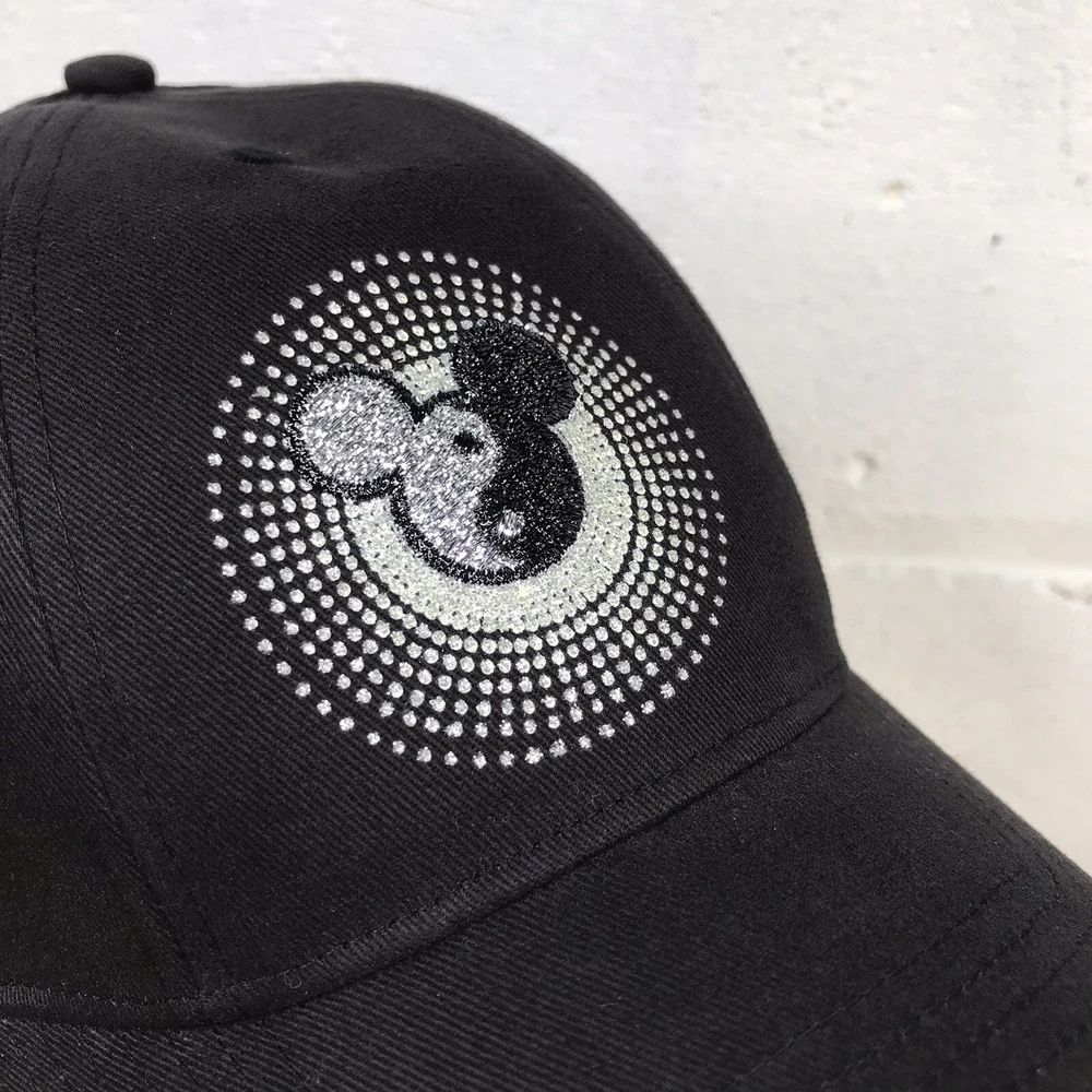 Walt Disney World Yin Yang Mickey Hat Adult Adjustable Strapback Cap Glitter Used Shows signs of very light wear The hat will ship in a box The hat in the photos is the exact item you are purchasing