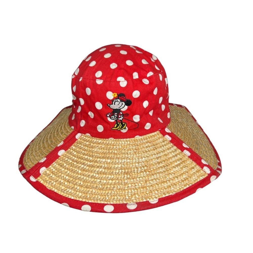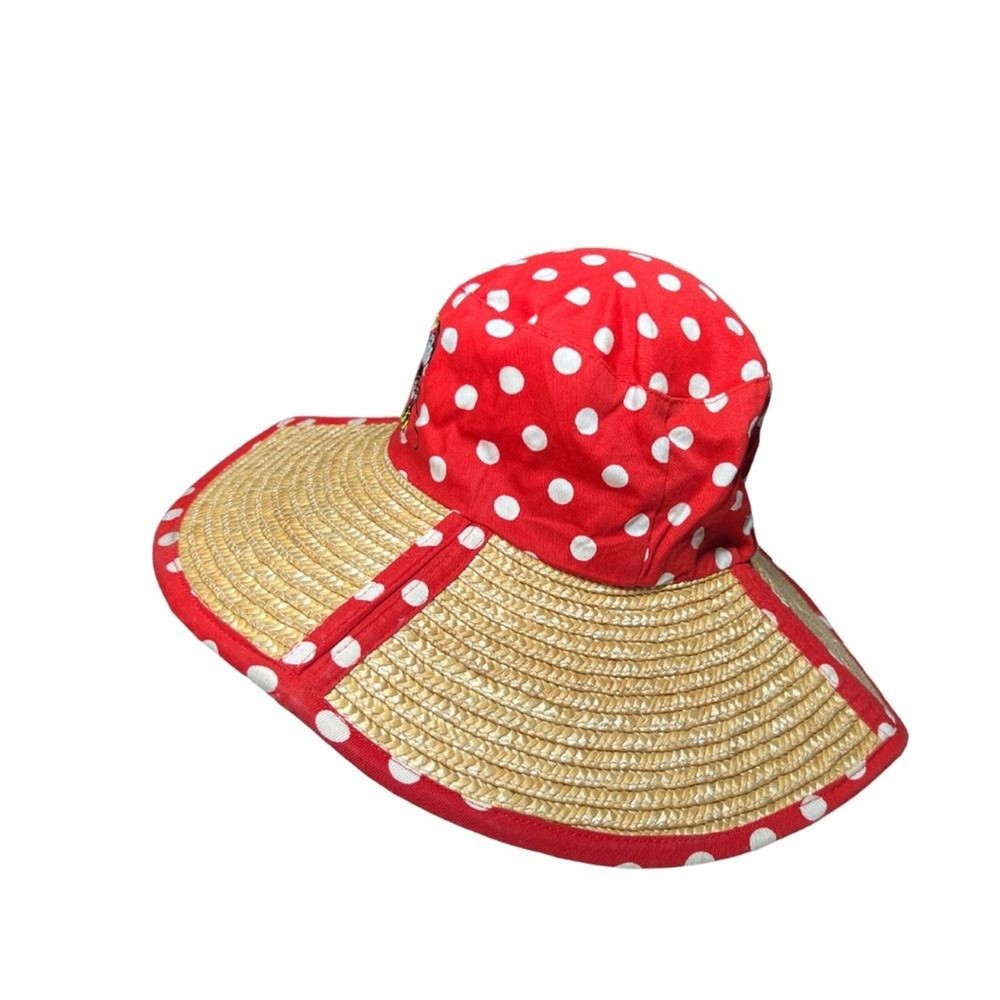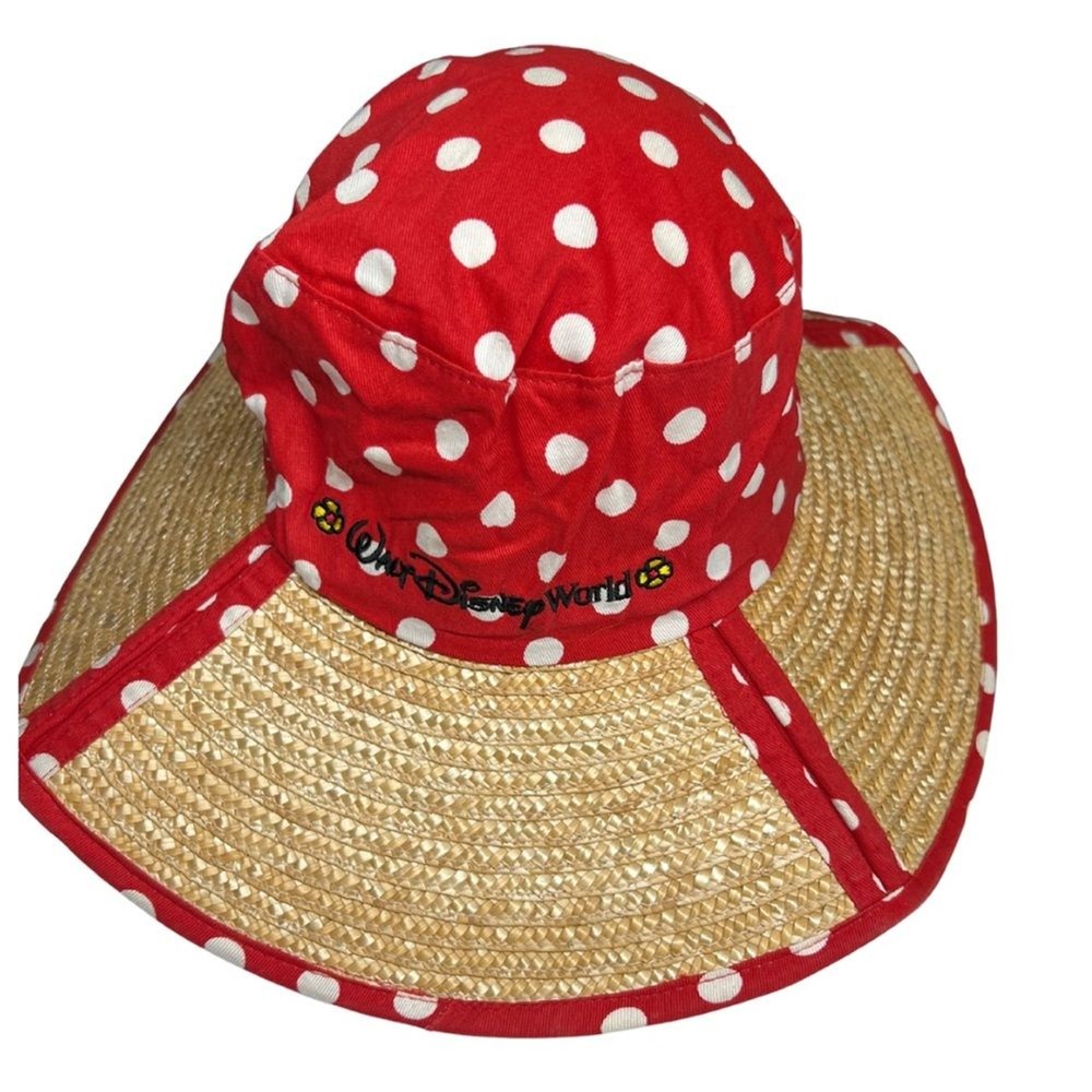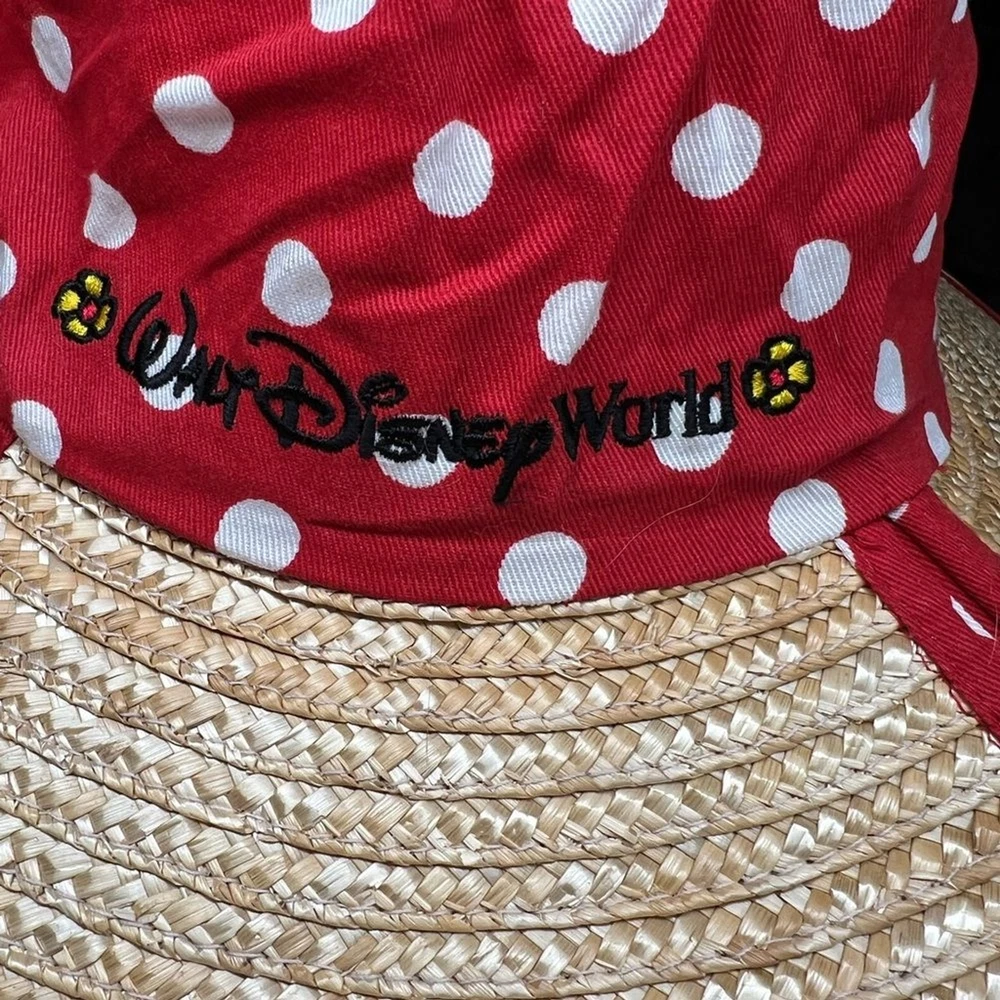 Walt Disney World polka dot Minnie Mouse red white sun hat straw vacation resort Excellent condition Cruise. Disney.