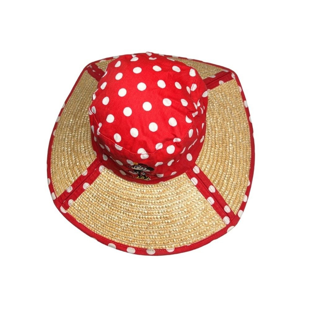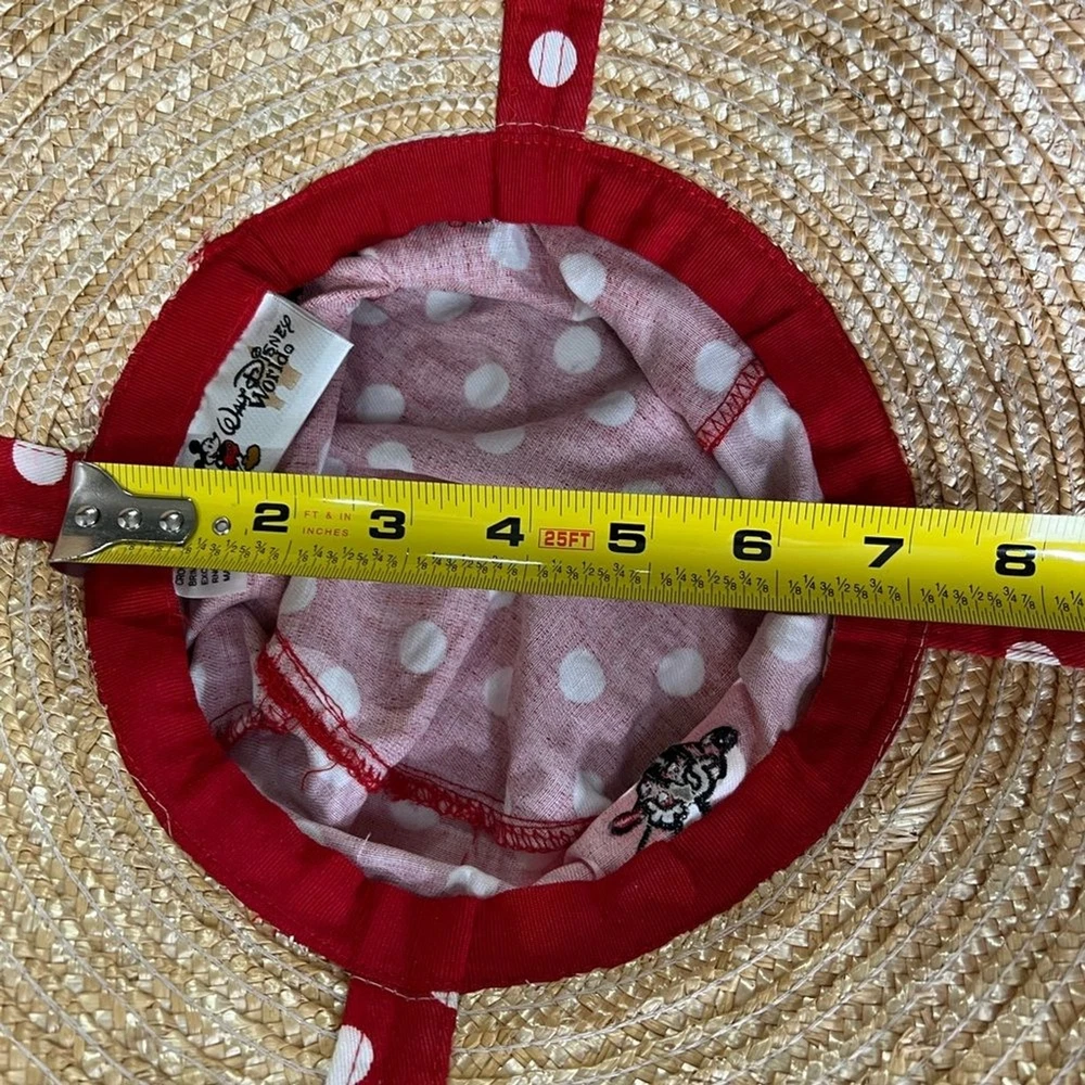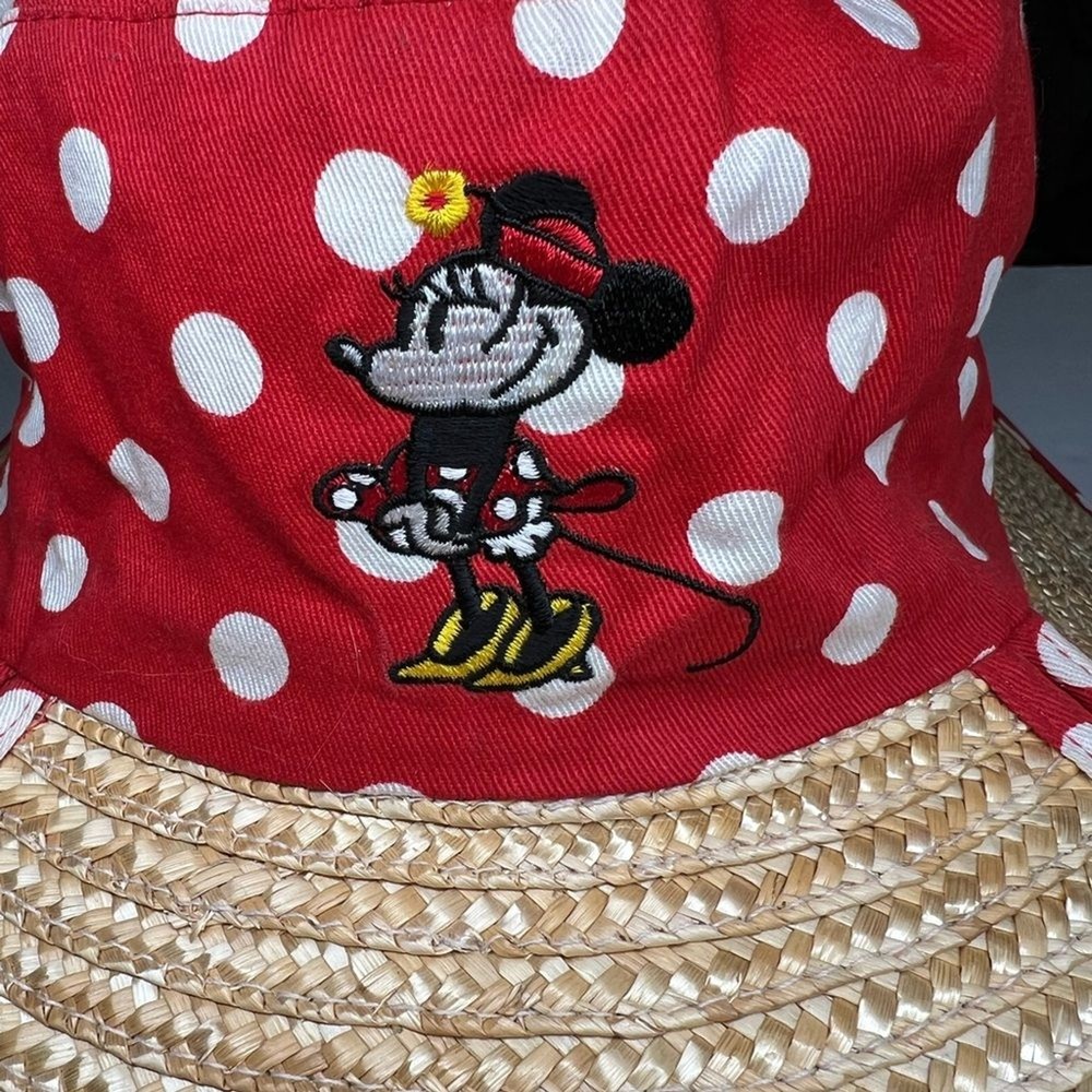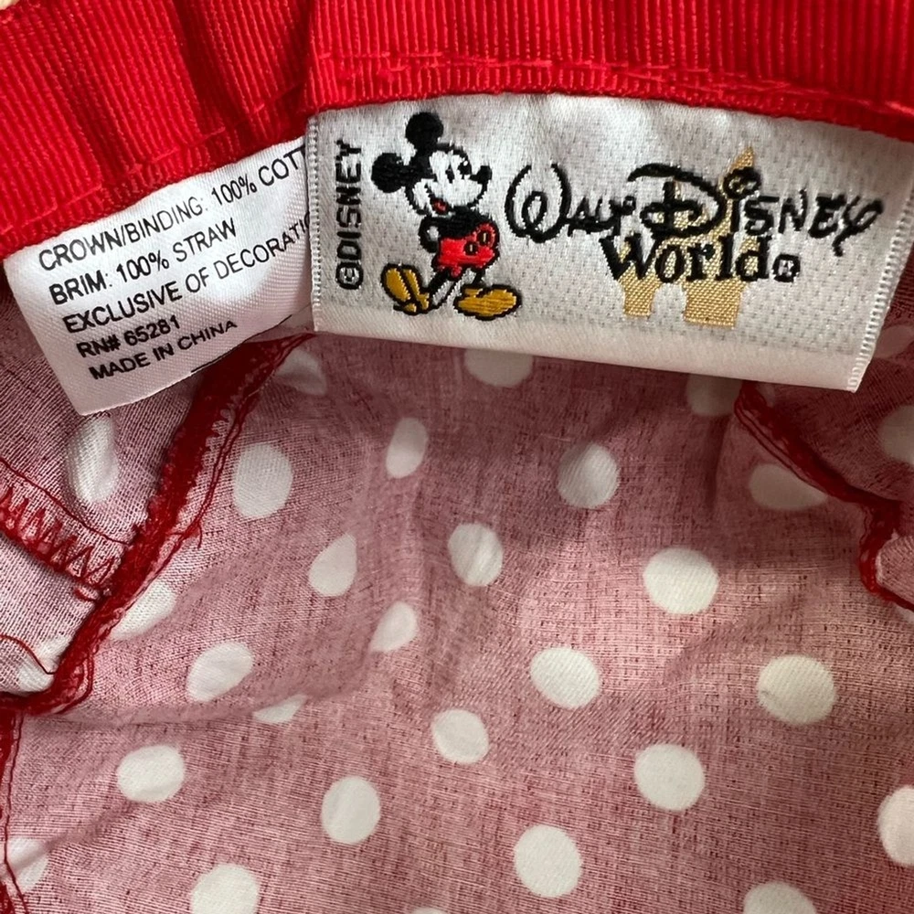 Walt Disney World polka dot Minnie Mouse red white sun hat straw vacation resort Excellent condition Cruise. Disney.