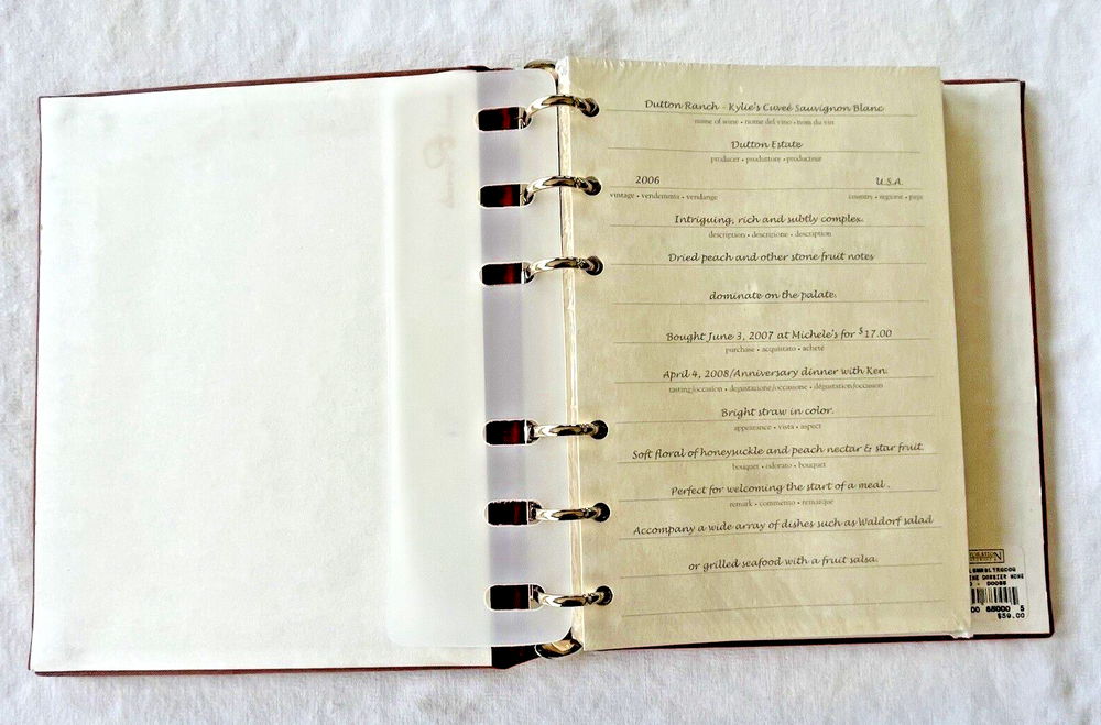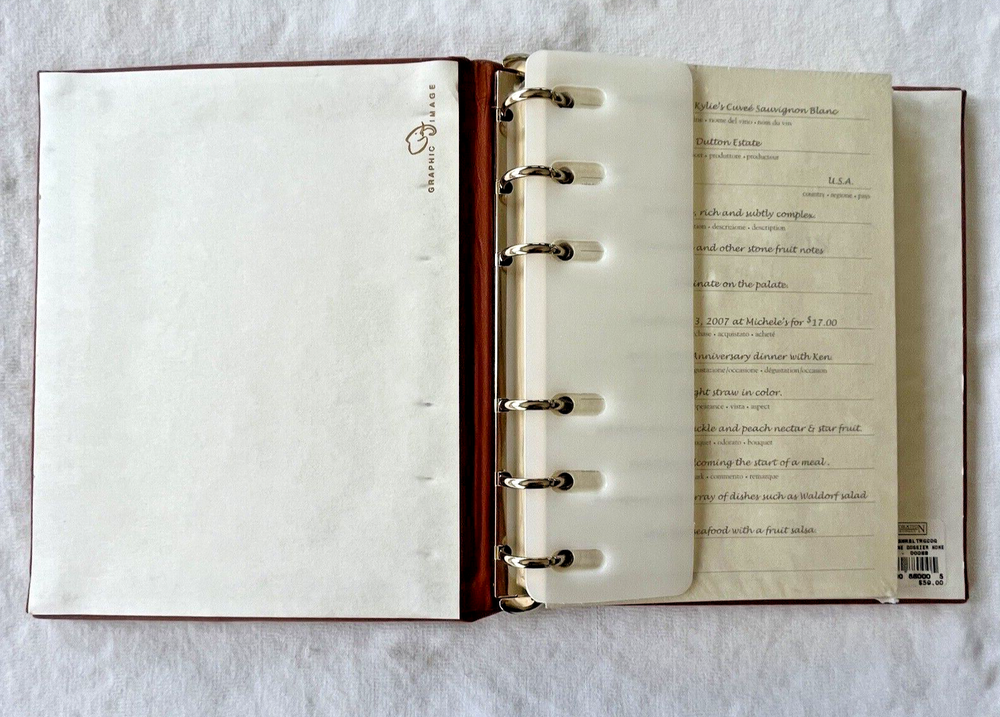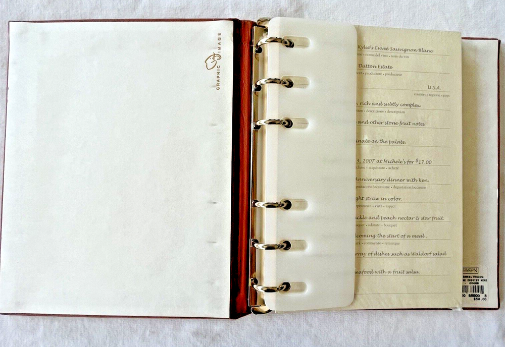 BRAND NEW- Wine Dossier by Graphic Image 2008 Tan Leather w/ Gold Gilt Edged Pages-Unused pages w/tabs still in plastic Cover size 6.5ʺW × 1.5ʺD × 7.75ʺH Please see photos...