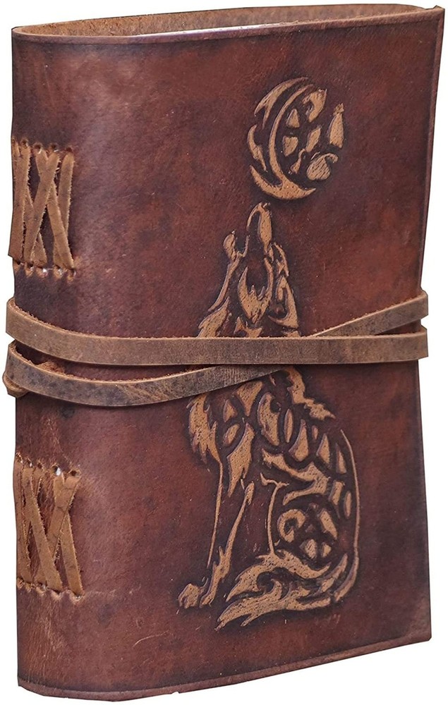 Wolf embossed handmade leather journal notebook is very beautifully embossed. Handmade journal features 120 handmade recycled cotton paper (240 pages both the sides). Beautiful diary has Coptic leather binding which secures the pages firmly. With embossed designs on front, our journal is a great tool for anyone wanting to record inspired thoughts, mystical moments, and potential rituals and recipes. Handmade in India, Sketchbook is great for keeping by the bedside to jot down dreams, or for use as a diary or journal. Notebook features leather bound closure to keep your secrets from prying eyes. Handcrafted journals contain acid free, handmade, archival Quality, linen - cotton parchment paper by a family owned company that has been in the handmade paper making business for almost 150 years. The book is approximately 7 inches tall, 5 inches wide, and 1.2 inches thick, and the pages are unlined. This brand new journal makes an ideal gift for that special someone or simply to keep for yourself. (Due to computer screen resolution color shades of product may slightly vary from images shown.) IDEAL SIZE - Handheld, medium size (7 x 5 x 1.2 inches). Easily carry this journal in your daily life and on your most exotic adventures GENUINE LEATHER CRAFTSMANSHIP - Crafted with genuine crazy horse leather texture, this leather journal offers a soft touch exterior with natural, distressed look that’s truly exclusive. UNIQUE GIFTS - Stunning gifts for men on Father’s Day, Graduation or the perfect gift for women on Mother’s Day, Valentine’s Day, Birthday’s or Anniversary. A True Art Treasure, this blank unlined notebook will become a Family Heirloom! LEATHER STRAP CLOSURE - Notebook features leather bound closure to keep your secrets from prying eyes. MANY USES - Can be used as a notepad, journal, writing notebook, sketch book. 1.25 inch thickness, easy for handwriting, drawing or sketching and compact for carrying in your bag. Ideal for alternative Artist Sketchbooks, Photo Album, Traveling Notes, Business Executive, Logbook, Poetry Work, Journalists, Food Planner, Instagram Scrapbook and Bible Journaling.