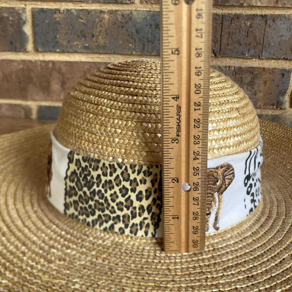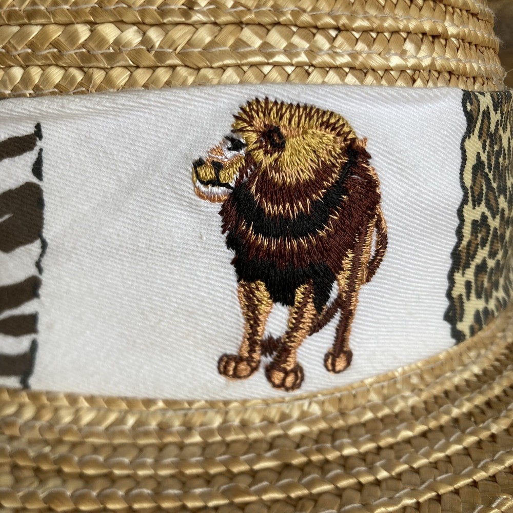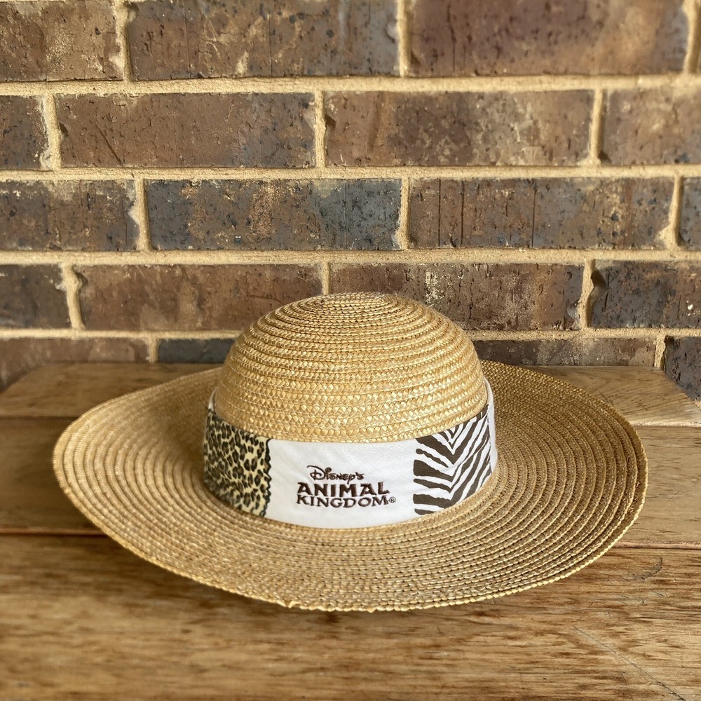 Women’s Walt Disney World Animal Kingdom Embroidered Safari Animal Straw Hat Make-up stains on interior fabric. See photos for measurements...