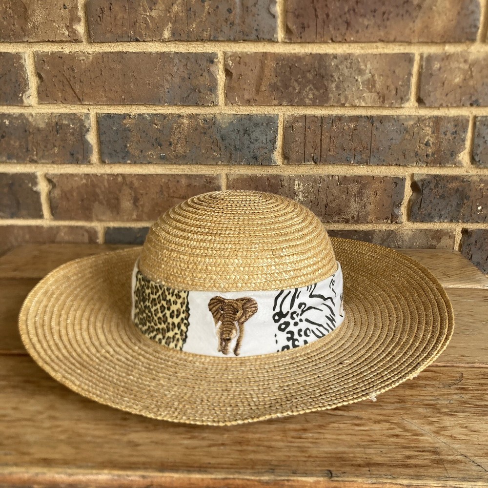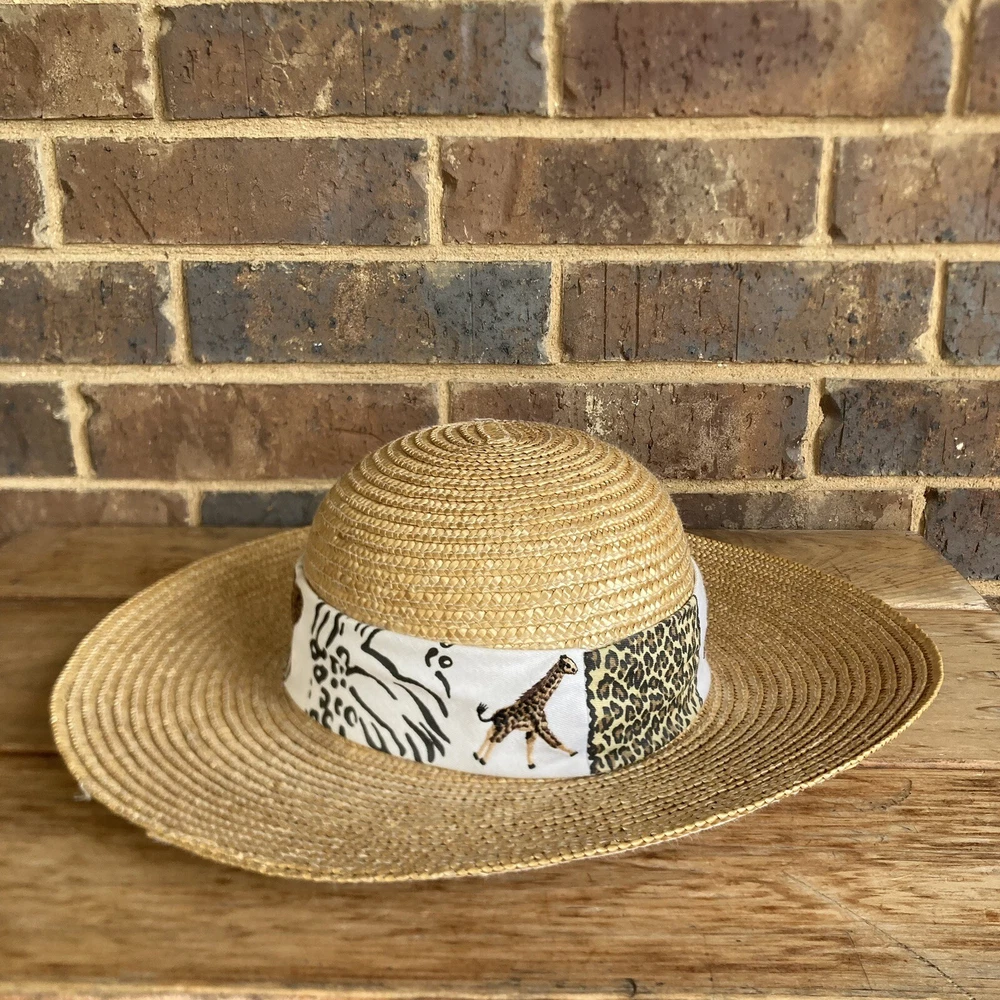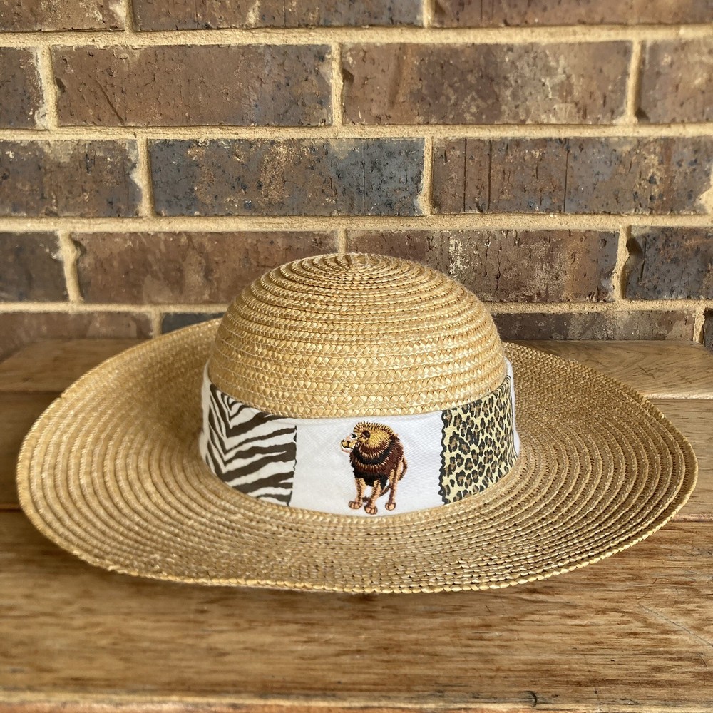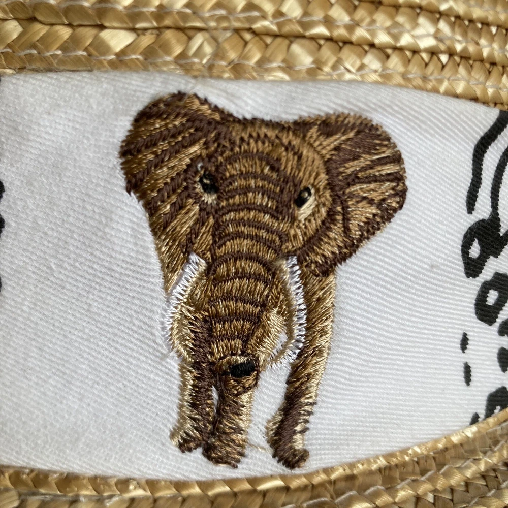 Women’s Walt Disney World Animal Kingdom Embroidered Safari Animal Straw Hat Make-up stains on interior fabric. See photos for measurements...