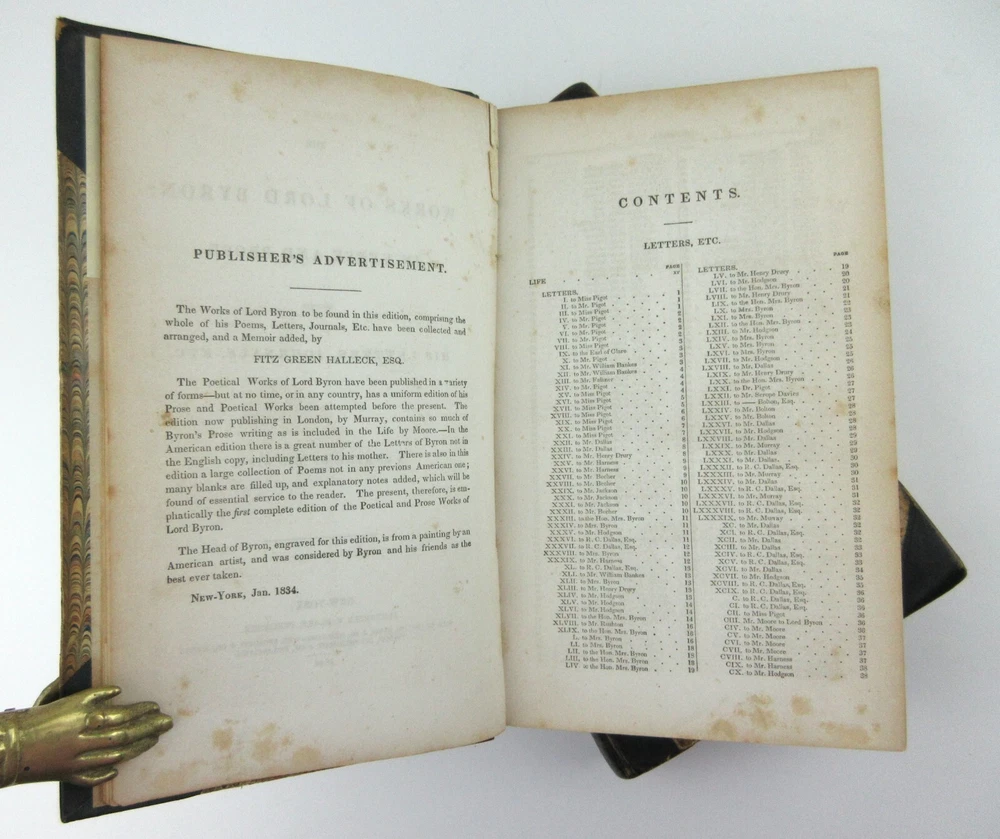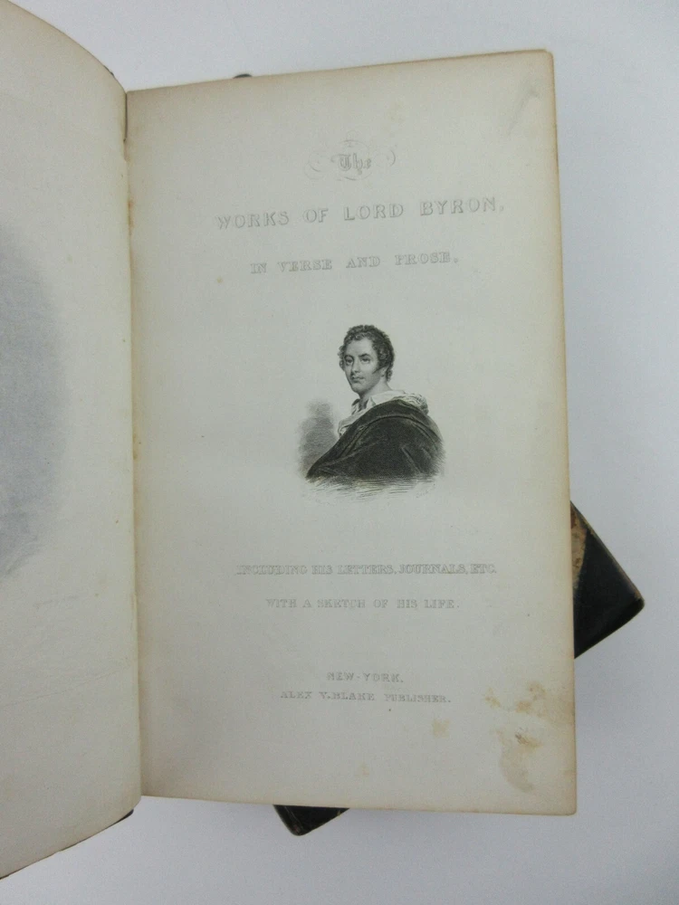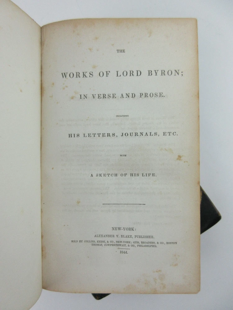 The Works of Lord Byron; In Verse and Prose . Including his letters, journals, etc. with a sketch of his life. NY: Alexander Blake, 1844. In 2 volumes.