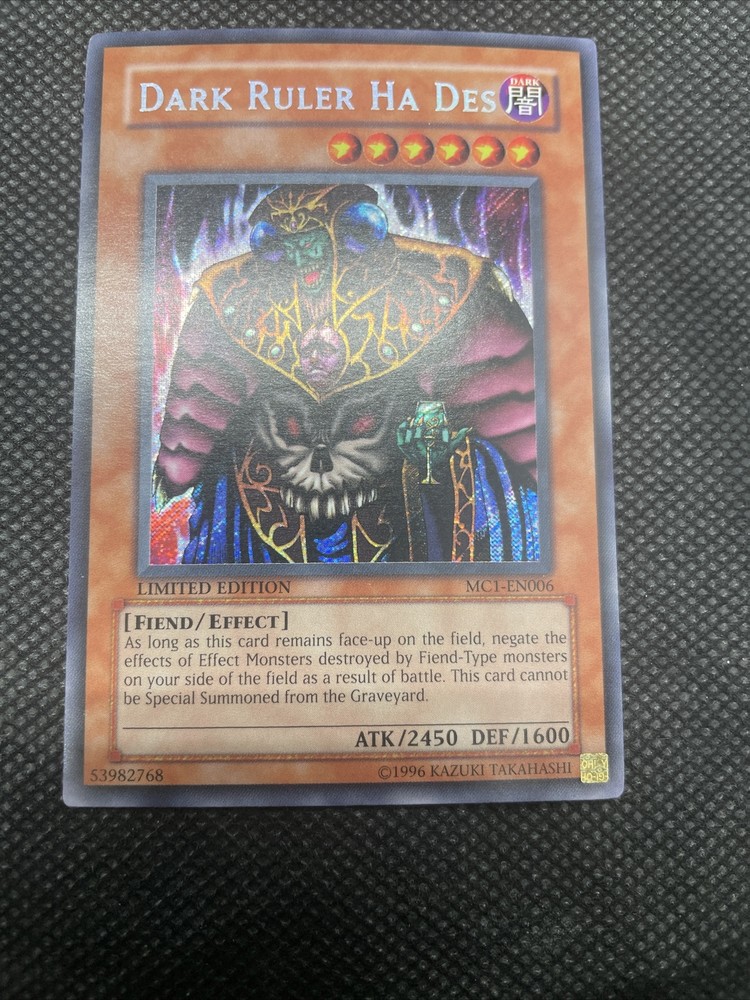 π₯ YUGIOH β’ DARK RULER HA DES β’ MC1-EN006 β’ SECRET RARE β’ LIMITED β’. Condition is Ungraded. Shipped with USPS Ground Advantage.