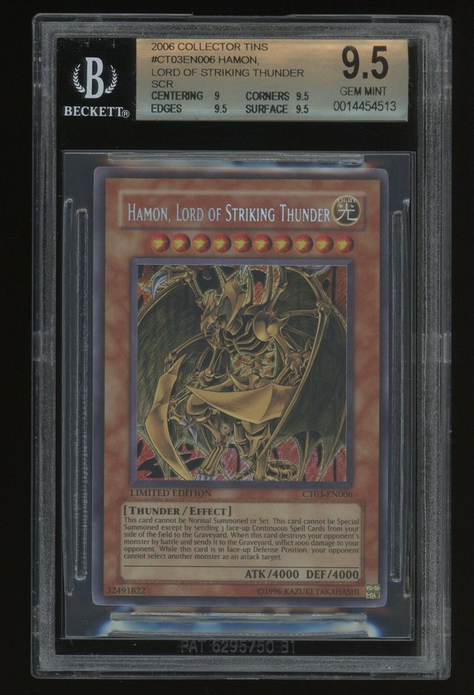 YUGIOH! HAMON LORD OF STRIKING THUNDER CT03-EN006 SECRET 2006 BGS 9.5 CONDITION: For raw cards, the condition is EX-NM+ depending on the year and manufacturer of the item. Almost all of the raw cards listed have been in sleeves and/or top loaders and boxes for a year up to a decade. Some cards may have surface dimples, imprints, or minor printing scratches. The cards may have whiting on edges, stains, whiting on corners, dull corners or edges, etc. please see scans to help judge the condition of the card listed. For Panini Mosaic Cards: The quality control on these cards is low from Panini. Some cards seem to have some type of adhesive or dried substance on the surfaces (from factory packaging). These cards should be expected to have some sort of issue from minor surface dimples to substances on the surface. If there are any questions about a specific card or possible factory wear on the card please reach out. For Thick Stock Cards/Relics: almost if not all thick stock cards are damaged on edges or corners during manufacturing/packaging. Any thick stock cards listed on this account are expected to have possibly damaged edges or other minor defects. For Slabs: slab companies are known for their low quality control and customer service. BGS slabs are known for easily chipping, scratching, and other minor defects. PSA slabs may also have minor scratches, marks, or minor defects as well. Please analyze the scan of the slab before purchasing. That being said, PSA slabs may hold similar defects as well. If you have any questions about the item(s) listed, please let me know. SHIPPING: Shipping is free! Any card sale $20 or less will be shipped through eBay’s $20 or less envelopes in a sleeve and/or top loader. Any slabs or raw cards sold over $20 will be shipped in bubble mailers through USPS with tracking. All cards will be shipped within one business day of payment being received. RETURNS: Returns are not accepted for this item. Thank You!