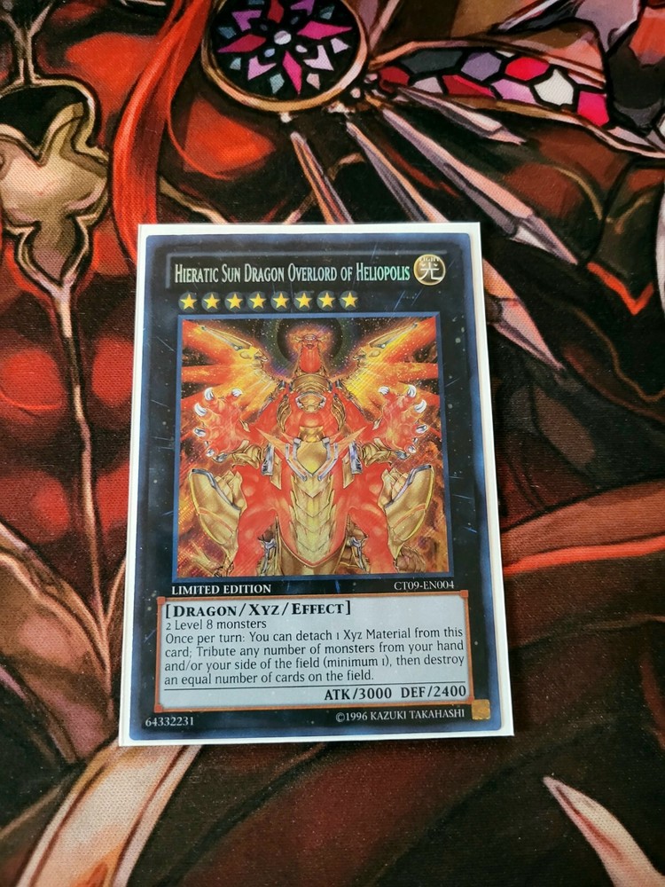 YUGIOH TCG HIERATIC SUN DRAGON OVERLORD OF HELIOPOLIS CT09-EN004 SECRET LIMITED EDITION NEAR MINT YOU GET WHATS SHOWN IN THE PICTURE AND DESCRIPTION ALL CARDS ARE SHIP WITH PROECTIONS. ALL CARDS THAT IS BELOW 20$ WELL BE SHIP IN PWE WITH EBAY TRACKING. 24$-21$ CARDS WELL BE WITH STAMPS PWE. CARDS ABOVE 25$ WELL BE SHIP IN BUBBLE MAIL WITH USPS GROUND SHIPPING TRACKING. IF YOUR ORDERS ADDS UP TO 25$ OR ABOVE IT WOULD BE ALSO IN A BUBBLE MAILER. IF YOU ARE FROM PUERTO RICO AND ARE BUYING MAKE SURE YOU HAVE "COUNTRY LIST AS UNITED STATES NOT PRI" OR ELSE I CAN'T PRINT EBAYSHIPPING LABEL WITH TRACKING AND WELL SENT ITEM BY STAMPS TO YOU. THANKS. To international buyers since I have been having many buyers that are using Fright Forward Services. YOU ARE BUYING AT YOUR OWN RISK. As I list in my description, I ship using PWE (Plain White Envelope) for cards that does not reach $25 and above. I do not know how the Fright Services pack it after mailing it to them. All I know is that many of the PWE does not make it to its original destination (your real home address) either it's the Fright Services fault for not packing it in bubble mailer or Usps for losing it in transit. If it is being send by PWE by the Fright Services, it made take months before getting there. Also, in case if its lost or does not make it to its destination you must direct your attention to the Fright Services before contacting me. It is not my responsibly for lost mail(item) due to 3rd party delivery. To make sure you get your cards to you faster and more accuracy you must order cards combining to $25 or above that way I can use Ground Advantage and send it in bubble mailer most of the bubble mailer I use will make it to its destination. Thank you. *UPDATED* REFER TO MY STORE PAGE 4/15/2025. IF YOU CAN LEAVE FEEDBACKS THAT WOULD BE MUCH APPRECIATE THANK YOU FOR BUYING.