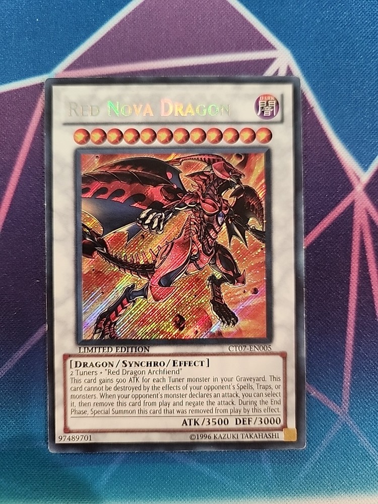 Hello duelist, This is the listing for: YUGIOH - Red Nova Dragon - CT07-EN005 SECRET RARE LIMITED ED - NM I will ship within 3 days after receiving payment and within the US only (No Puerto Rico & Guam) . I don't do return so no impulsive buying please. Feel free to reach out to me if you have any questions regarding the listing. Serious buyer only. I use stock photos. If the card has any problem, I will list them out. All my cards are 100% authentic and I take care of them very well so buy with confidence. :) Check out my store for more awesome YUGIOH cards & decks at competitive prices!