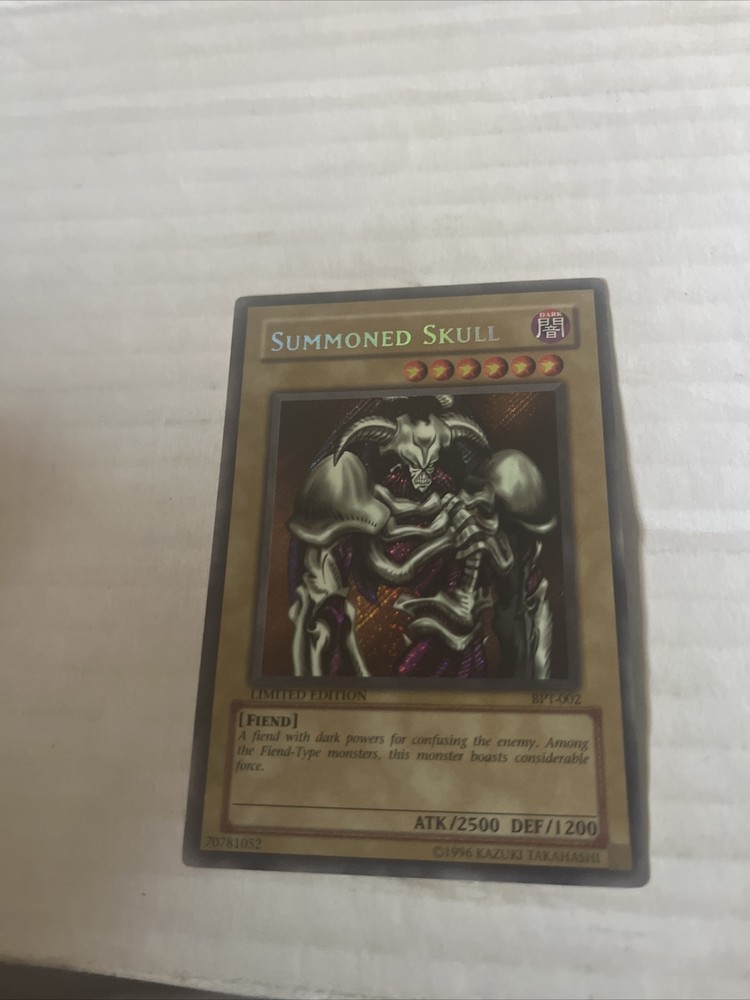 This limited edition Yu-Gi-Oh! TCG card is a must-have for any collector. The Summoned Skull card, with the card number BPT-002, is a Secret Rare card with a Foil finish. It belongs to the Collector’s Tin set and features Yugi Muto as the character. The card has 1200 defense/toughness and 2500 attack/power, making it a powerful Fiend type creature. It is suitable for players aged 4+ and is manufactured by Konami. This card is perfect for anyone who wants to add a rare and unique card to their collection.