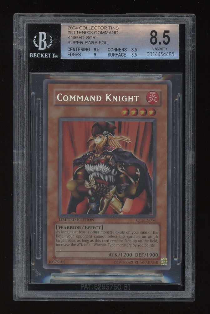 Yu-Gi-Oh! 2004 Promo Secret Rare LIMITED ED. CT1-EN003 Command Knight BGS 8.5. CONDITION: DISCLAIMER FOR BECKETT/BGS YUGIOH AND POKÉMON GRADED CARDS: the trading card game slabs in Beckett cases that are for sale on this account’s page may have cracks or damage to the cases (seen on photos). The damage commonly seen would be slight cracks or chips along the edge of the slab. Almost all of the BGS slabs have slight marks on the front and/or back. Beckett slabs may also have adhesive on the top or bottom edge of the slab from price stickers. For raw cards, the condition is EX-NM+ depending on the year and manufacturer of the item. Almost all of the raw cards listed have been in sleeves and/or top loaders and boxes for a year up to a decade. Some cards may have surface dimples, imprints, or minor printing scratches. The cards may have whiting on edges, stains, whiting on corners, dull corners or edges, etc. please see scans to help judge the condition of the card listed. For Panini Mosaic Cards: The quality control on these cards is low from Panini. Some cards seem to have some type of adhesive or dried substance on the surfaces (from factory packaging). These cards should be expected to have some sort of issue from minor surface dimples to substances on the surface. If there are any questions about a specific card or possible factory wear on the card please reach out. For Thick Stock Cards/Relics: almost if not all thick stock cards are damaged on edges or corners during manufacturing/packaging. Any thick stock cards listed on this account are expected to have possibly damaged edges or other minor defects. For Slabs: slab companies are known for their low quality control and customer service. BGS slabs are known for easily chipping, scratching, and other minor defects. PSA slabs may also have minor scratches, marks, or minor defects as well. Please analyze the scan of the slab before purchasing. That being said, PSA slabs may hold similar defects as well. If you have any questions about the item(s) listed, please let me know. SHIPPING: Shipping is free! Any card sale $20 or less will be shipped through eBay’s $20 or less envelopes in a sleeve and/or top loader. Any slabs or raw cards sold over $20 will be shipped in bubble mailers through USPS with tracking. All cards will be shipped within one business day of payment being received. RETURNS: Returns are not accepted for this item. Thank You!