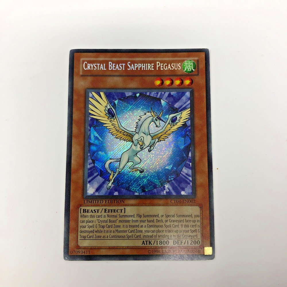 YuGiOh! CRYSTAL BEAST SAPPHIRE PEGASUS: CT04-EN002 SECRET RARE Limited NM Crystal Beast Sapphire Pegasus | CT04-EN002 | Secret Rare | Limited | Condition: NM Card(s) comes shipped with protective top loader and sleeve Combined Shipping Offered with Other Promo, Magic the Gathering, and Yugioh Cards Only CY-868