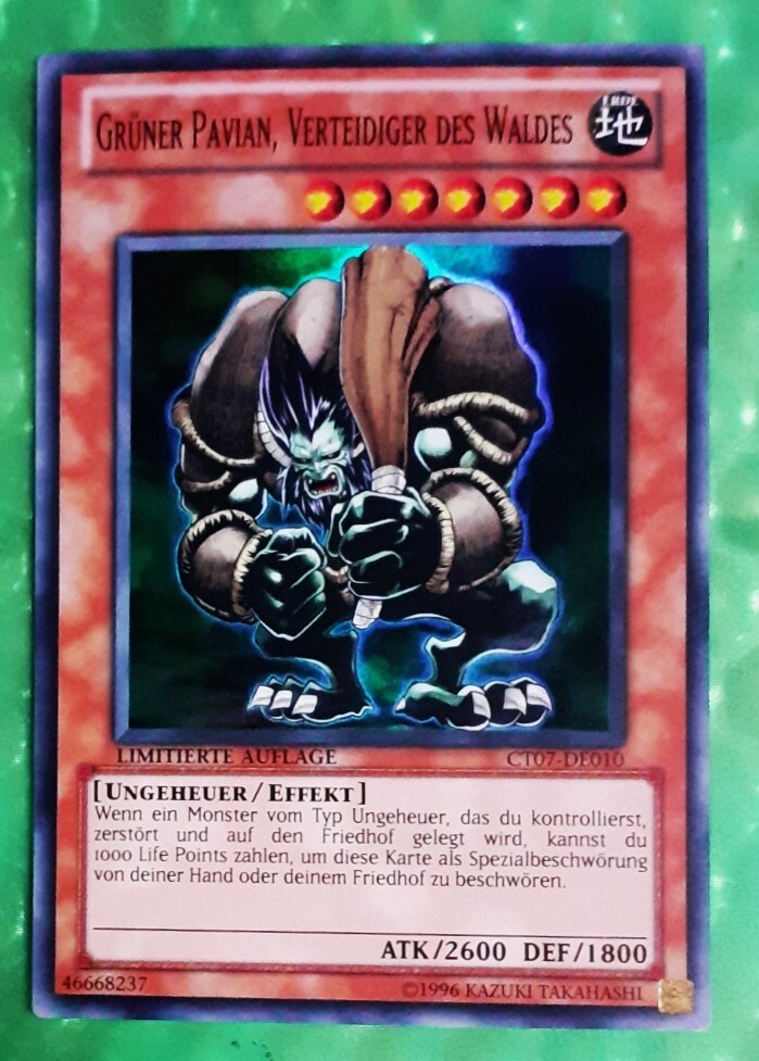 Yu-Gi-Oh Grüner Pavian, Verteidiger des Waldes tausende weitere Karten vorhanden wenn noch nicht eingestellt, bitte nachfragen Wichtiger Hinweis: Versandkosten werden nach Kauf auf Anfrage gern individuell angepasst. Versicherungsschutz bei Bedarf durch kostenpflichtiges Einschreiben ( bis 20,-/25,- EUR versichert), oder weitere ebenfalls kostenpflichtige Maßnahmen vereinbar Da es sich hierbei um einen Verkauf durch einen Privatanbieter handelt, schließe ich Garantie und Rückgabe aus.