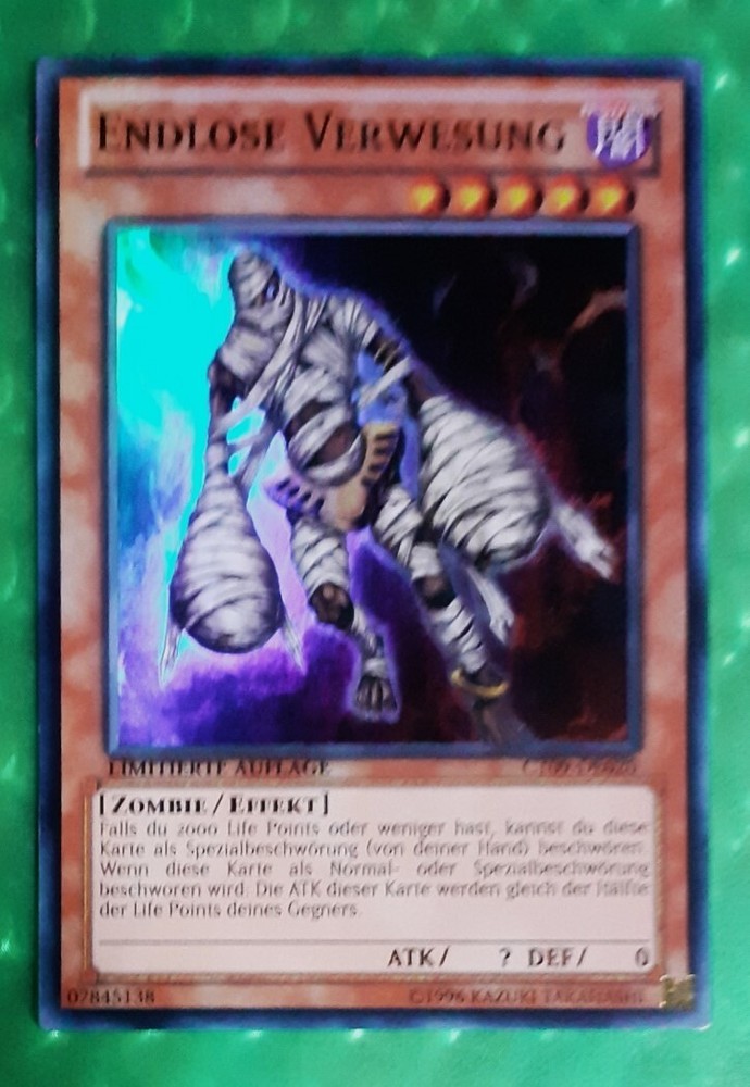 Yu-Gi-Oh Endlose Verwesung limitiert tausende weitere Karten vorhanden wenn noch nicht eingestellt, bitte nachfragen Wichtiger Hinweis: Versandkosten werden nach Kauf auf Anfrage gern individuell angepasst. Versicherungsschutz bei Bedarf durch kostenpflichtiges Einschreiben ( bis 20,-/25,- EUR versichert), oder weitere ebenfalls kostenpflichtige Maßnahmen vereinbar Da es sich hierbei um einen Verkauf durch einen Privatanbieter handelt, schließe ich Garantie und Rückgabe aus.