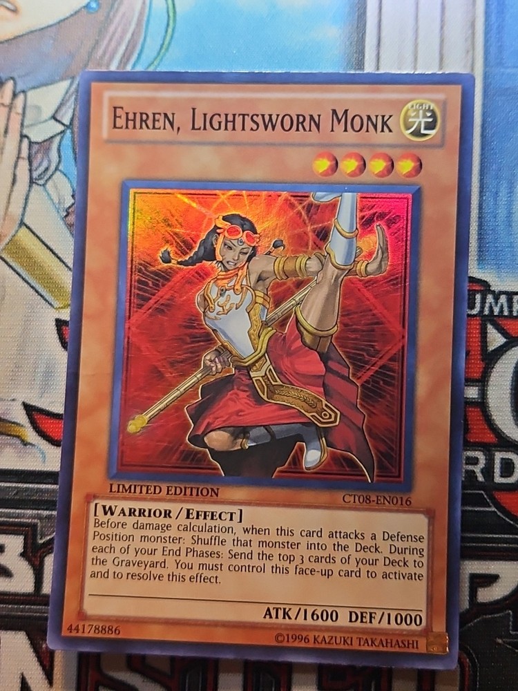 Yu-Gi-Oh! - Ehren, Lightsworn Monk 2011 CT08-EN016 SR Limited Edition Yu-Gi-Oh! - Ehren, Lightsworn Monk 2011 CT08-EN016 SR Limited Edition Yu-Gi-Oh! - 2011 Collectors Tins Ehren, Lightsworn Monk 2011 CT08-EN016 Super Rare Limited Edition Details Set: 2011 Collectors Tins Card: Ehren, Lightsworn Monk Number: CT08-EN016 Manufacturer: Yu-Gi-Oh! Year: 2011 Variation: Super Rare Version: Limited Edition Notes: Images on listing are scans of actual card you will receive, please use photos to determine condition. Card will be stored and shipped in a protective toploader. We sell collectible merchandise, with conditions ranging from used, vintage to brand new. We do our best to accurately describe the features and condition of each item. Due to the nature of these products, the item and/or original packaging may have handling wear, aging, etc. Please carefully review the description and photos to evaluate the condition of the item to ensure it meets your expectations prior to purchase. We do not use stock images , each photo on this listing is of the actual item for sale. We do offer combined shipping for multiple items going to the same address. Of course, feel free to ask us any questions you may have! Thank you for shopping with us. Please visit our eBay store to check out our other collectible items! Welcome Shipping Returns Thanks for stopping by our store! We appreciate the opportunity to earn your positive feedback and share our unique collection with you! If you have any concerns, please contact us immediately so we can assist you. We are very responsive and happy to assist. Here at Back in the Day, we are pleased to share our collection of vintage and modern collectibles with you. From classic movie, music and gaming memorabilia to pop culture toys and so much more, take home a piece of nostalgia from our ever-changing stockroom. Be sure to browse all our categories frequently so you don't miss out on that rare find! Shipping Speed We are proud to provide fast service to our customers; your order will be shipped within 1 business day of placing your order. On average, domestic First Class/Ground Advantage packages arrive in 5-7 business days (depending on destination). On average, domestic Priority packages arrive in 3-5 business days (depending on destination). On average, FedEx Ground/Home packages arrive in 2-6 business days. We observe all government holidays. We cannot guarantee delivery dates. Packaging We take care in packaging each order - you can rest assured that your items will be thoughtfully packaged to minimize risk and arrive safely to you. Combined Shipping We're happy to combine shipping for multiple items going to the same address.* Multiple items should auto-combine in your cart, but if not, you can request an invoice with combined shipping. We will choose the lowest cost shipping option during fulfillment meeting all carrier weight and policy requirements. *We are unable to combine shipping on auction orders for separate auctions (auctions ending on different dates). Orders must be paid within four days from auction end, or will be cancelled. Additional Once we ship your order, we will provide you tracking information. If you do not receive your shipment within 11 business days of placing your order, feel free to contact us and we’ll be happy to investigate it further. If an item is returned to us due to an incorrect or incomplete address entered during purchase, the buyer is responsible for paying shipping cost if they want the item resent. If the item will not be resent, the buyer will be issued a refund for the cost of the item, not the cost of shipping paid. Please review your shipping details to ensure successful delivery. Please also note that the shipping rates for items we sell are weight-based. We will choose the most cost-efficient delivery method for your order based on weight and size. To reflect the policies of the shipping companies we use, all weights will be rounded up to the nearest pound or ounce, depending on the carrier requirements. We are always available if you have questions! We value your business. Just let us know what you need help with and we will respond quickly. If an item is damaged in shipping, we will be happy to help. Please contact us with your order number and details, including pictures of the damaged item within 30 days of purchase. Due to the nature of the products we sell, and the fact that many are vintage and not new merchandise, items are not eligible for return without reasonable cause. Please take care in reviewing product descriptions and photos before placing your order to be fully aware of the condition of the item. Feel free to ask any questions you may have about an item and we will respond as soon as possible.