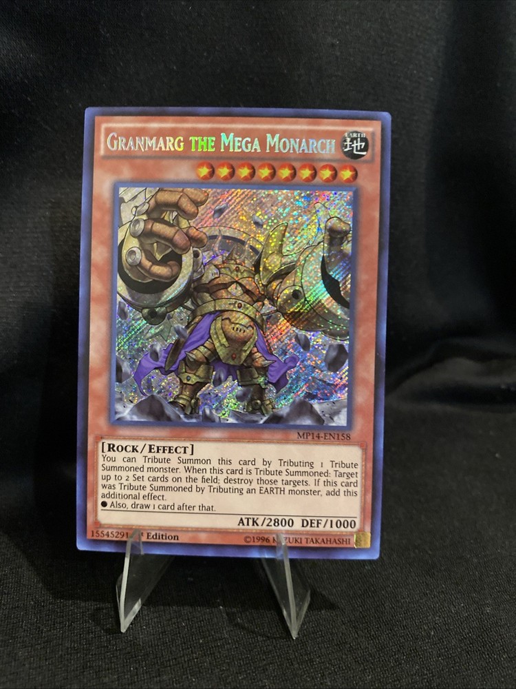 Elevate your Yu-Gi-Oh! TCG collection with the formidable Granmarg, The Mega Monarch card, a Secret Rare 1st Edition from the MP14-EN158 series. As a pivotal Effect-type monster, it boasts an impressive 2800 attack power and a robust 1000 defense toughness, making it a force to be reckoned with in any duel. Crafted by Konami and hailing from Japan, this English-language card features a stunning foil finish that brings the Rock-type creature to life. Ideal for players and collectors over the age of 6, Granmarg, The Mega Monarch is a must-have for those looking to enhance their game or showcase a piece of the Yu-Gi-Oh! franchise in their collection.