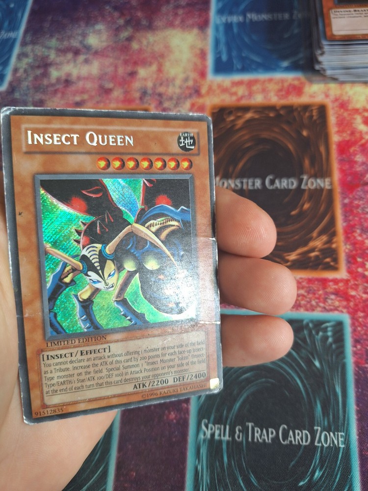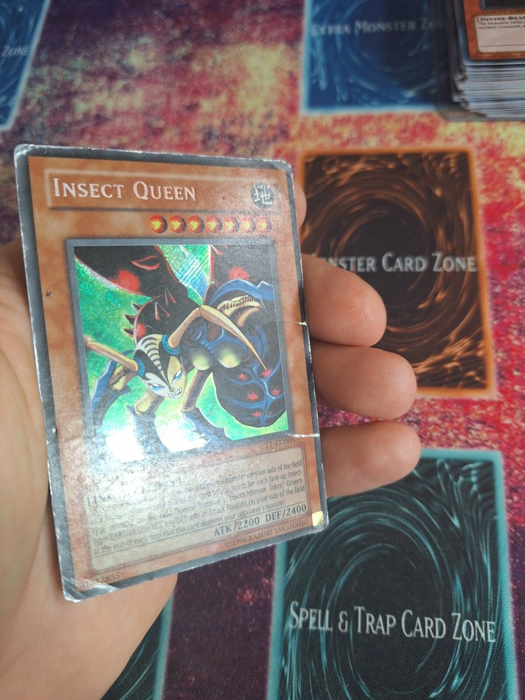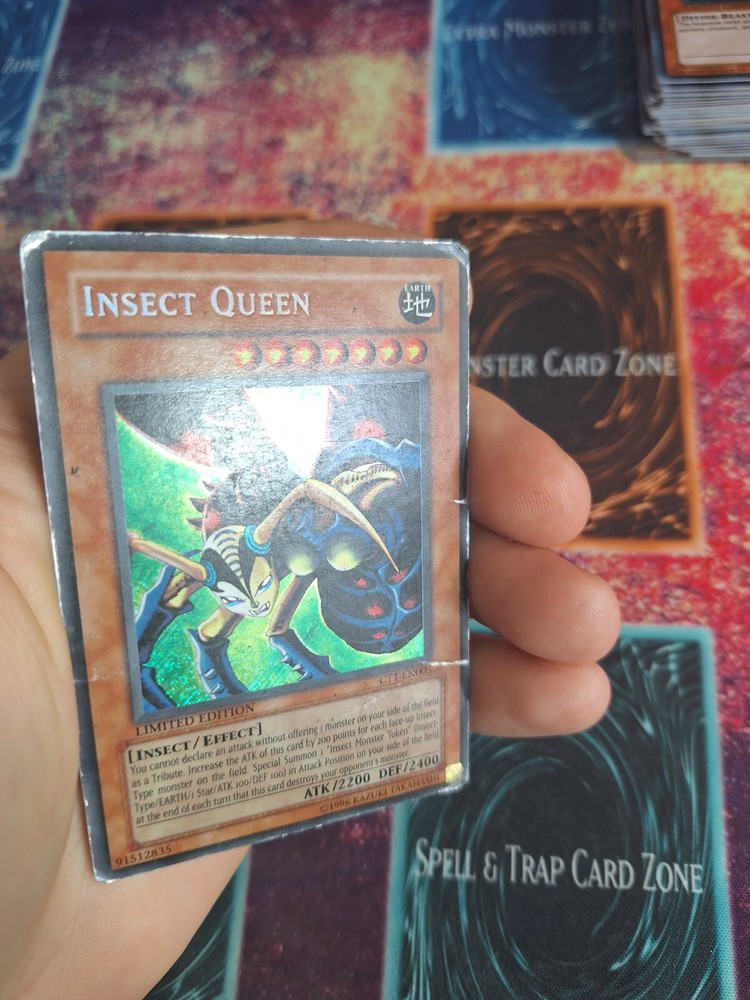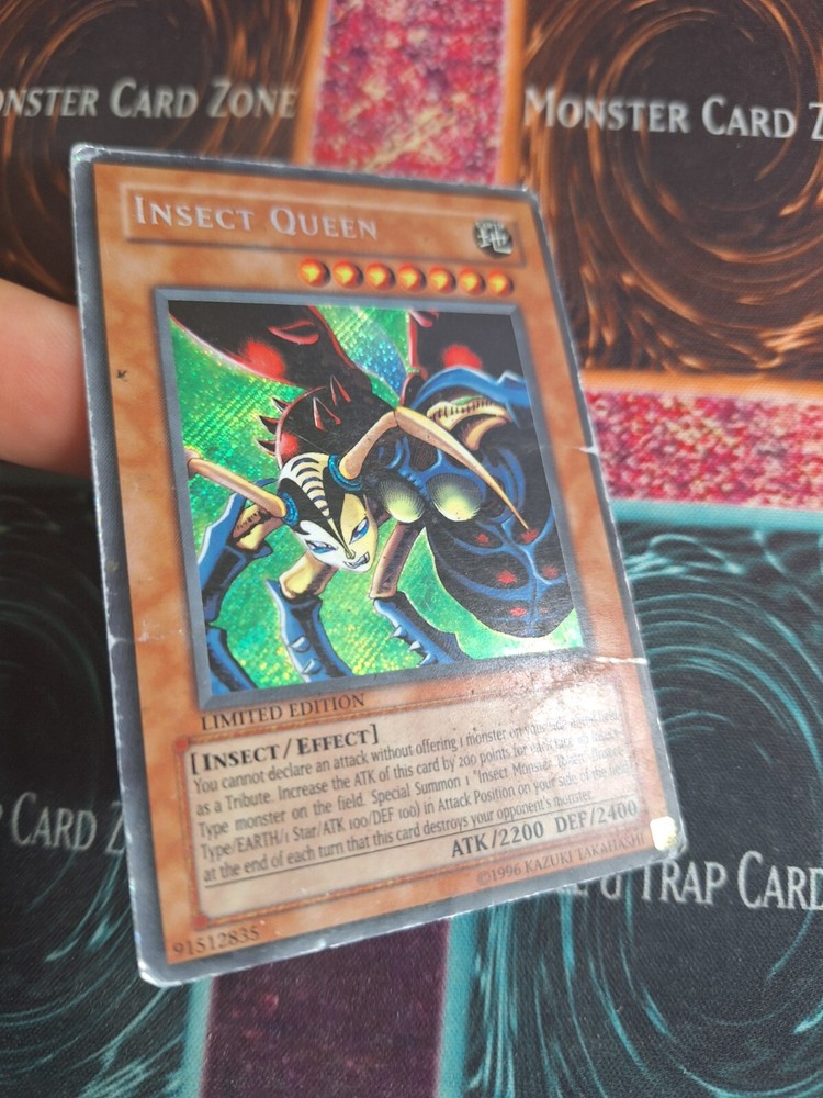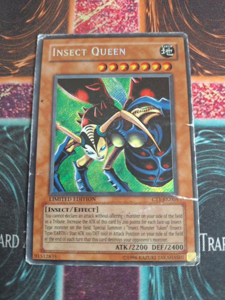 Yu-Gi-Oh! Insect Queen CT1-EN005 Limited Secret Rare HP/DMG . Lots of creasing, whitening surface wear.