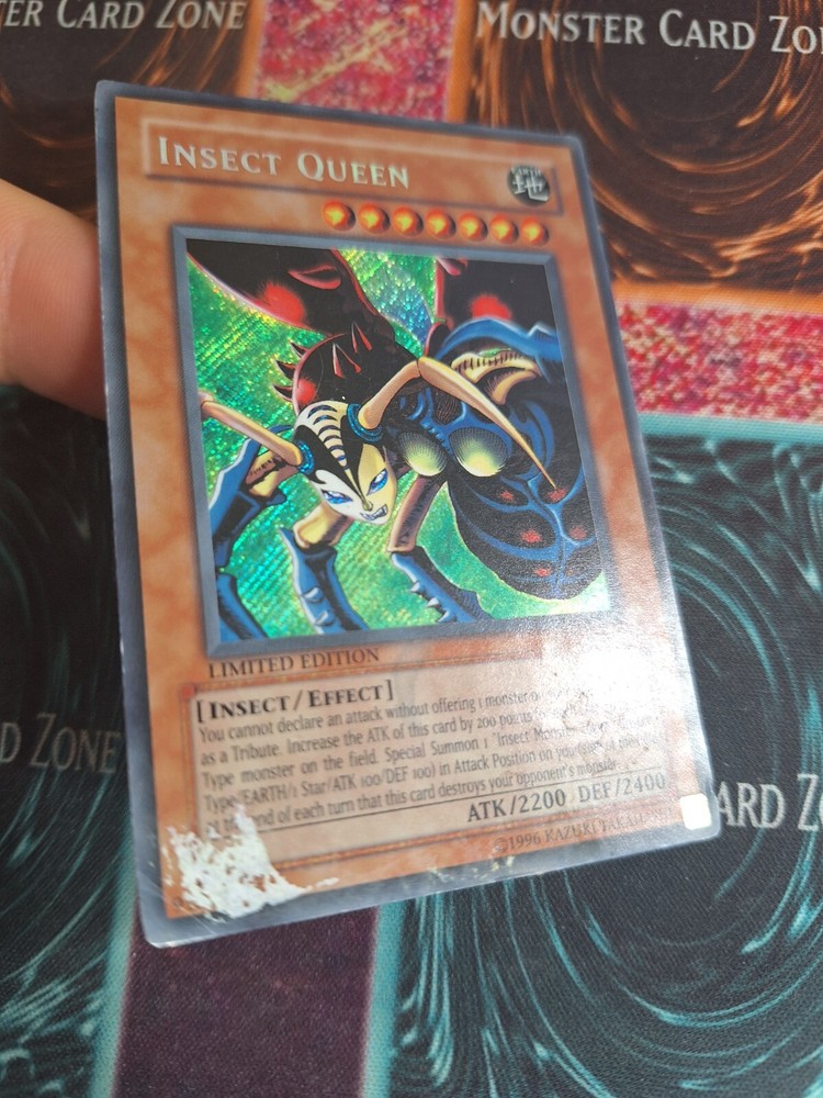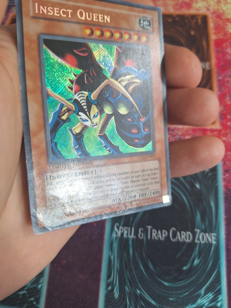 Yu-Gi-Oh! Insect Queen CT1-EN005 Limited Secret Rare HP/DMG. Poor corner, lots of surface wear and whitening, crease....