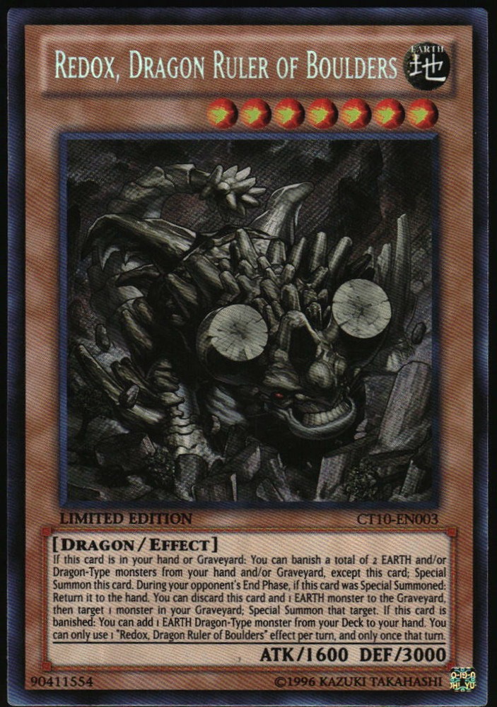 Yu-Gi-Oh! - Redox, Dragon Ruler of Boulders 2013 CT10-EN003 SR Limited Edition Yu-Gi-Oh! - Redox, Dragon Ruler of Boulders 2013 CT10-EN003 SR Limited Edition Yu-Gi-Oh! - 2013 Collectors Tins Redox, Dragon Ruler of Boulders 2013 CT10-EN003 Secret Rare Limited Edition Details Set: 2013 Collectors Tins Card: Redox, Dragon Ruler of Boulders Number: CT10-EN003 Manufacturer: Yu-Gi-Oh! Year: 2013 Variation: Secret Rare Version: Limited Edition Notes: Images on listing are scans of actual card you will receive, please use photos to determine condition. Card will be stored and shipped in a protective toploader. We sell collectible merchandise, with conditions ranging from used, vintage to brand new. We do our best to accurately describe the features and condition of each item. Due to the nature of these products, the item and/or original packaging may have handling wear, aging, etc. Please carefully review the description and photos to evaluate the condition of the item to ensure it meets your expectations prior to purchase. We do not use stock images , each photo on this listing is of the actual item for sale. We do offer combined shipping for multiple items going to the same address. Of course, feel free to ask us any questions you may have! Thank you for shopping with us. Please visit our eBay store to check out our other collectible items! Welcome Shipping Returns Thanks for stopping by our store! We appreciate the opportunity to earn your positive feedback and share our unique collection with you! If you have any concerns, please contact us immediately so we can assist you. We are very responsive and happy to assist. Here at Back in the Day, we are pleased to share our collection of vintage and modern collectibles with you. From classic movie, music and gaming memorabilia to pop culture toys and so much more, take home a piece of nostalgia from our ever-changing stockroom. Be sure to browse all our categories frequently so you don't miss out on that rare find! Shipping Speed We are proud to provide fast service to our customers; your order will be shipped within 1 business day of placing your order. On average, domestic First Class/Ground Advantage packages arrive in 5-7 business days (depending on destination). On average, domestic Priority packages arrive in 3-5 business days (depending on destination). On average, FedEx Ground/Home packages arrive in 2-6 business days. We observe all government holidays. We cannot guarantee delivery dates. Packaging We take care in packaging each order - you can rest assured that your items will be thoughtfully packaged to minimize risk and arrive safely to you. Combined Shipping We're happy to combine shipping for multiple items going to the same address.* Multiple items should auto-combine in your cart, but if not, you can request an invoice with combined shipping. We will choose the lowest cost shipping option during fulfillment meeting all carrier weight and policy requirements. *We are unable to combine shipping on auction orders for separate auctions (auctions ending on different dates). Orders must be paid within four days from auction end, or will be cancelled. Additional Once we ship your order, we will provide you tracking information. If you do not receive your shipment within 11 business days of placing your order, feel free to contact us and we’ll be happy to investigate it further. If an item is returned to us due to an incorrect or incomplete address entered during purchase, the buyer is responsible for paying shipping cost if they want the item resent. If the item will not be resent, the buyer will be issued a refund for the cost of the item, not the cost of shipping paid. Please review your shipping details to ensure successful delivery. Please also note that the shipping rates for items we sell are weight-based. We will choose the most cost-efficient delivery method for your order based on weight and size. To reflect the policies of the shipping companies we use, all weights will be rounded up to the nearest pound or ounce, depending on the carrier requirements. We are always available if you have questions! We value your business. Just let us know what you need help with and we will respond quickly. If an item is damaged in shipping, we will be happy to help. Please contact us with your order number and details, including pictures of the damaged item within 30 days of purchase. Due to the nature of the products we sell, and the fact that many are vintage and not new merchandise, items are not eligible for return without reasonable cause. Please take care in reviewing product descriptions and photos before placing your order to be fully aware of the condition of the item. Feel free to ask any questions you may have about an item and we will respond as soon as possible.