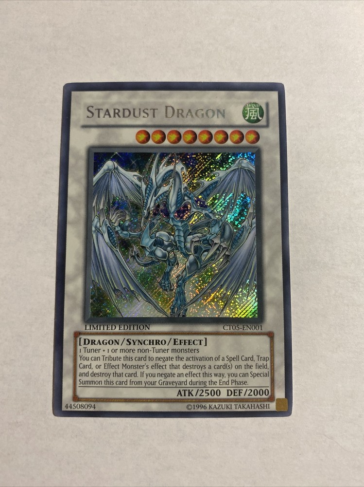 Limited Edition Stardust Dragon Yu-Gi-Oh Card CT05-EN001 with crease