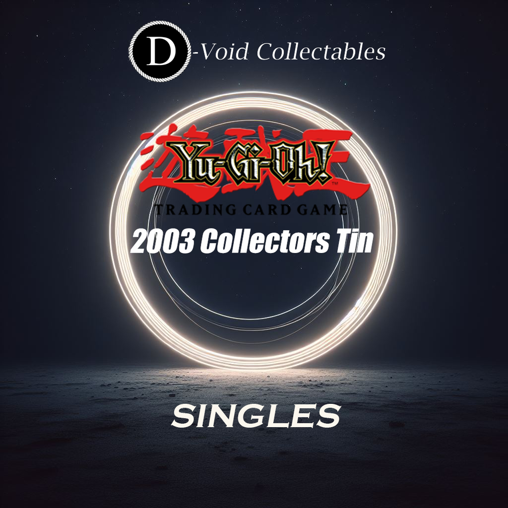 This listing is for Yu-Gi-Oh! TCG - 2003 Collectors Tin - Singles Condition: Lighty played *Please refer to photos for condition Delivered through D-Void Collectables Australian deliveries - All orders with 7 or more cards or with a card worth over $10 will be sent with tracking International deliveries - All orders with 7 or more cards or with a card worth over $30 will be sent with tracking Set details as follows; The 2003 Collector's Tins are six collectible tins, released in 2003. Each tin contains one promotional card, which is depicted on the tin and one of each of the following Booster Packs; Legend of Blue Eyes White Dragon, Metal Raiders, Spell Ruler (known as Magic Ruler at the time), Pharaoh's Servant and Labyrinth of Nightmare. In North America, this was the first release for the 5 booster packs to show Magic Cards renamed to Spell Cards. However, the Spell Cards in the Spell Ruler packs still had a MRL set abbreviation because the set was still printed as Magic Ruler. Breakdown There are six Secret Rare promotional cards, consisting of two Normal Monsters, three Effect Monsters and one Fusion Monster. Two of the cards are used by Yugi Muto, two are used by Seto Kaiba and two are used by Joey Wheeler.