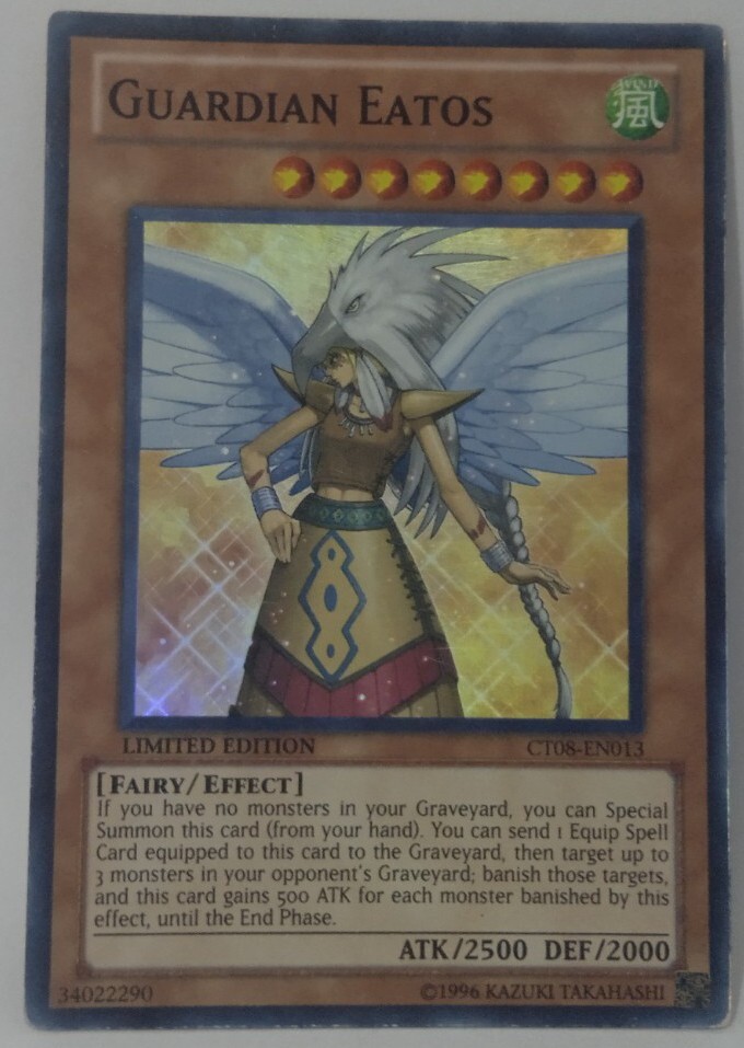 Yu-Gi-Oh! TCG Guardian Eatos 2011 Collectors Tins CT08-EN013 Limited Super Rare. Includes: - Card without damages/minimum damages (See pictures for more information). Handling time: 3 business days Shipping: Economy Shipping: Arround USA, Mexico, Canada, South America and Caribean, 15 to 30 business days Standard Shipping: Arround USA, Mexico, Canada, South America and Caribean, 7 to 10 business days Important: Orders less than 15 USD with economy shipping doesn't include tracking number, buy products in this store more than 15 USD and you recieve certified shipping (tracking number is provided) “Import duties , taxes , and charges are not included in the item price or shipping cost. These charges are the buyer’s responsibility. Please check with your country’s customs office to determine what these additional costs will be prior to bidding or buying" .