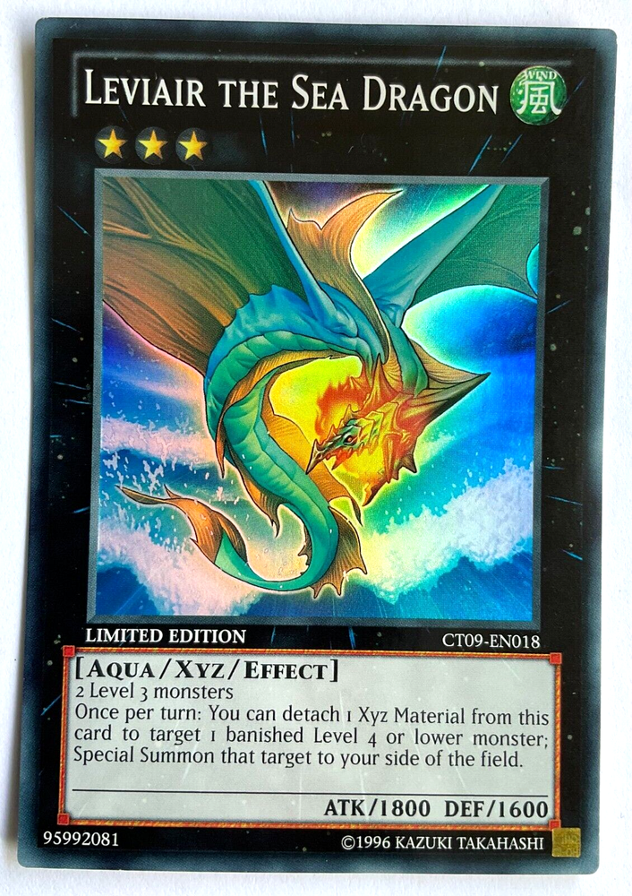 YuGiOh TCG Leviair the Sea Dragon CT09-EN018 Limited Edition Super Rare (LP) 2012 Collectors Tin ***Card Condition: Lightly Played (wears on upper edge) (Refer to pictures) Are you a Yugioh enthusiast looking to expand your collection? Look no further! Check out our store, we offers a wide range of Yugioh products that not only cater to your collecting needs but also help you save on postage. **Please Read** What to Expect: When you purchase Yugioh products from our store, you can rest assured that you are getting genuine, pack-fresh items. Each product comes with a card sleeve to ensure its protection and preservation. The card condition is top-notch, ranging from Excellent to Near Mint or Better, unless stated otherwise . You can refer to the pictures provided for a closer look at the product's condition. Shipping Information: Our team takes great care in packing your items securely to prevent any damage during transit. Your items will be sent in a well-padded envelope via Australia Post with a tracking number. We also offer combined shipping for multiple items purchased . If you buy more than one item, an updated invoice will be issued with the combined postage, saving you money on shipping costs. International Buyers: For our international buyers, we offer different shipping options to suit your needs. We offer Registered shipping, which includes a tracking number for added security. Additionally, we provide International Express shipping for those who prefer a faster delivery option, with the buyer covering the extra expenses. Are you considering purchasing an item from a different country? It's important to understand the shipping process and any additional fees that may apply. Here is some essential information to keep in mind: What is the delivery time for international orders? Delivery time can vary depending on the destination country. To get a more accurate estimate, it's recommended to contact the seller before making a purchase. This way, you can plan accordingly and avoid any unexpected delays. Are import duties and taxes included in the price? Import duties and taxes are not included in the item price and shipping cost. These charges are the responsibility of the buyer and may vary depending on the country's regulations. It's essential to be aware of these additional costs to avoid any surprises upon delivery. When will the item be dispatched? Once the payment has been cleared, the item will be dispatched on the same day or the next business day. Please note that this excludes weekends and public holidays. This quick turnaround ensures that you receive your purchase in a timely manner. Thank you for considering an international purchase. By understanding the shipping process and associated fees, you can make a well-informed decision and enjoy your new item without any unexpected surprises. Thank you for Shopping with us