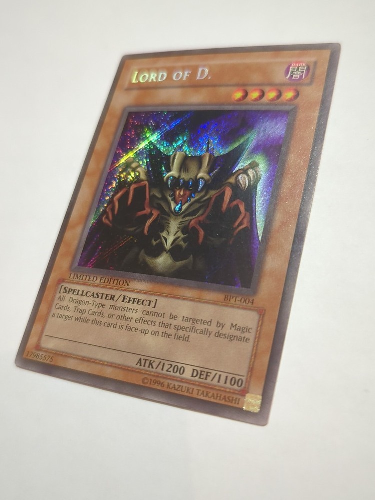 Yu-Gi-Oh! TCG Lord of D. BPT-004 Limited Secret Rare NM. The condition of this card is: Near Mint *All cards sold will be inside of a penny sleeve and top load card holder. Packaging will be in a bubble envelope for extra protection.* **In an attempt to empty my collection, every order will come with a gift of additional sleeved cards of various conditions that may fit the theme/archetype (depending on what's remaining in my collection). The bigger the sale, the bigger the gift!**